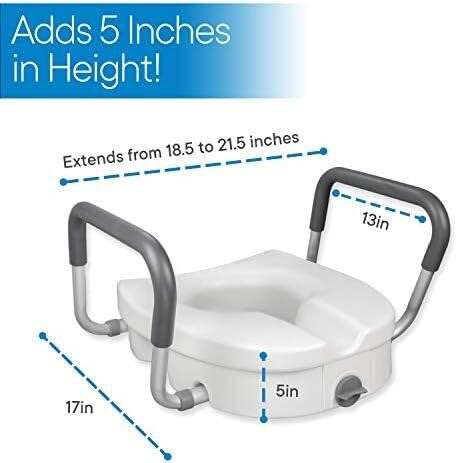 RMS Raised Toilet Seat - 5 Inch Elevated Riser with Adjustable Padded Arms - Toilet Safety Seat for Elongated or Standard Commode