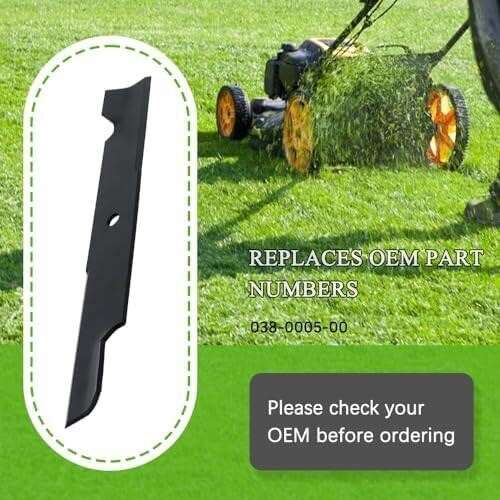 Replacement for: KEDAKEJI lawn mower parts-mulching blades compatible with Toro 54 Recyclers with steel decks Mowers. Replaces OEM Numbers#: The replacement part numbers for these blades is 038-0005-00 and fits MZ Magnum. Specification: Each blade measures 18-3/4 in. L and 2-1/2 in. W5/8 in. center hole diameter. Package: There are 3 pieces 038-0005-00 blades in the package.