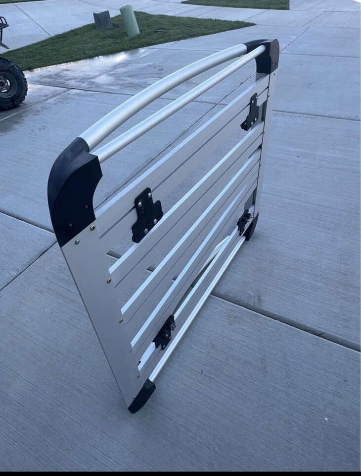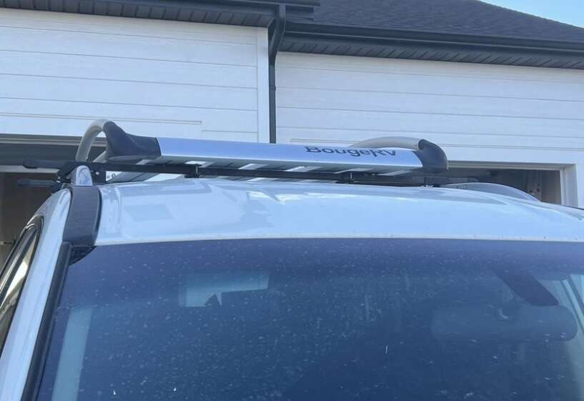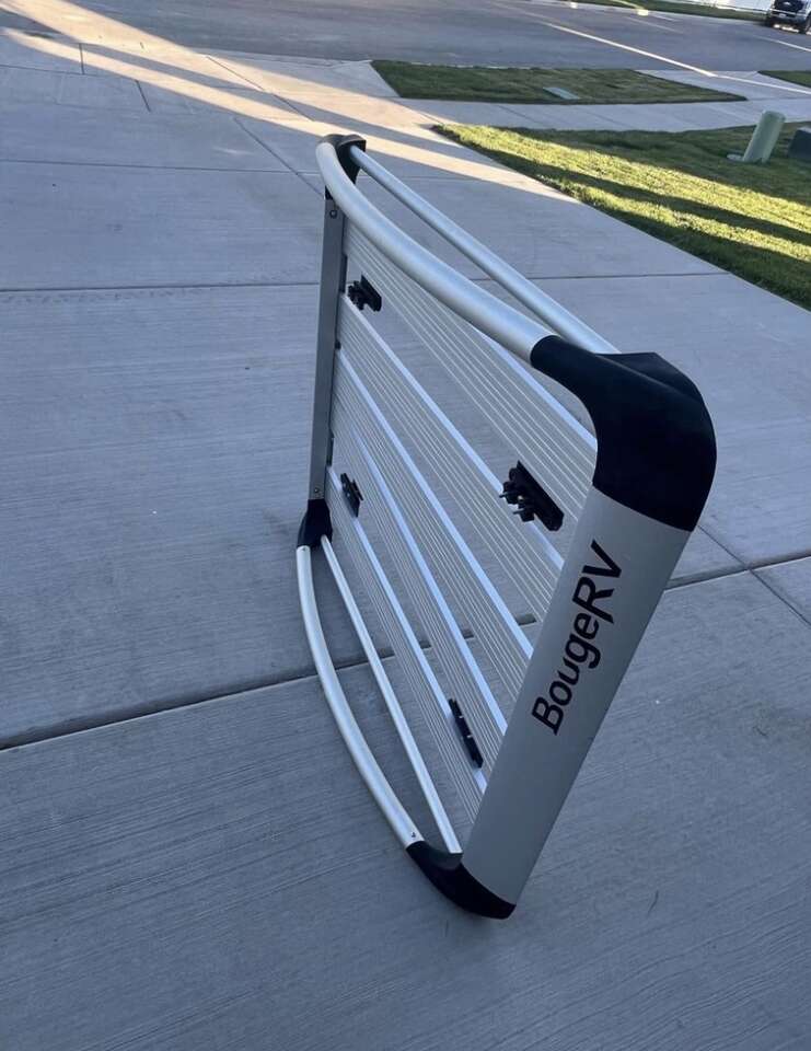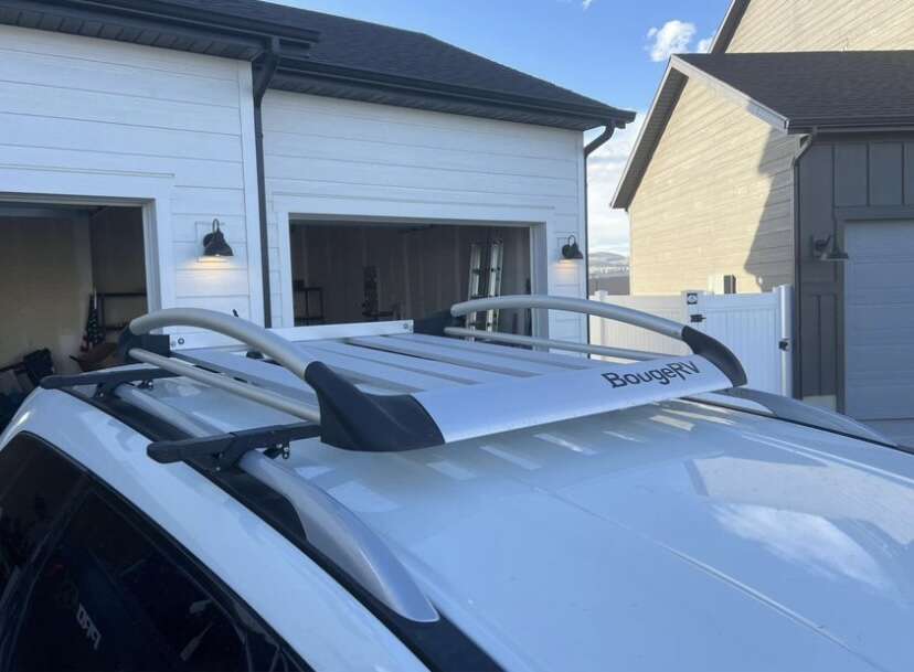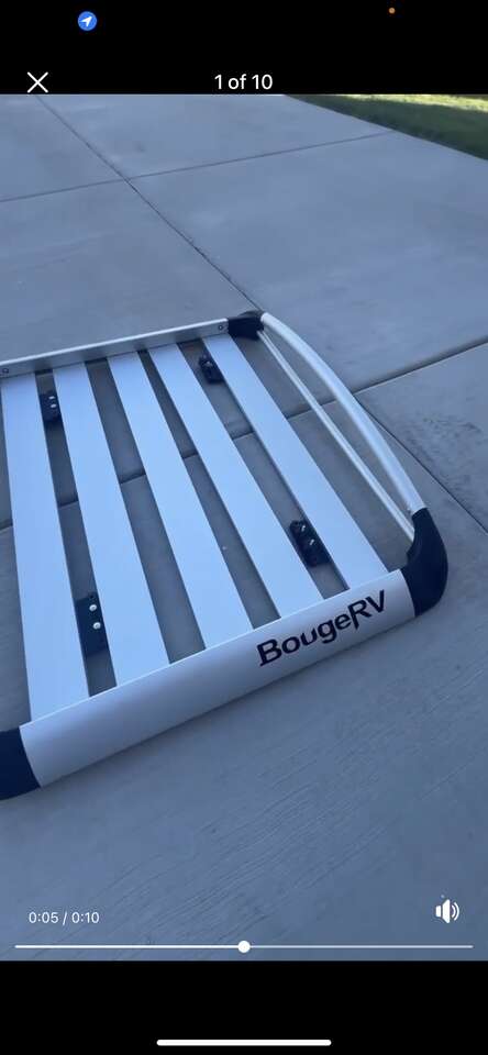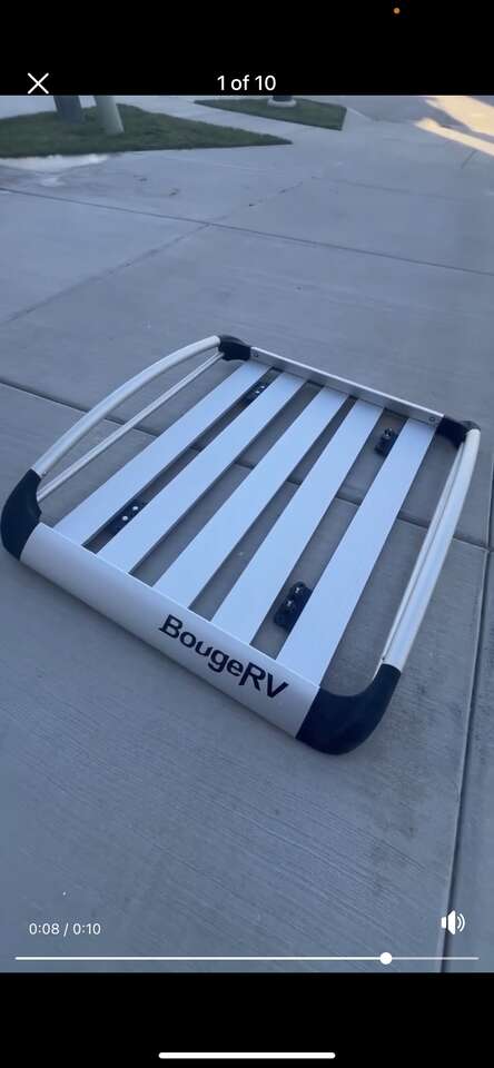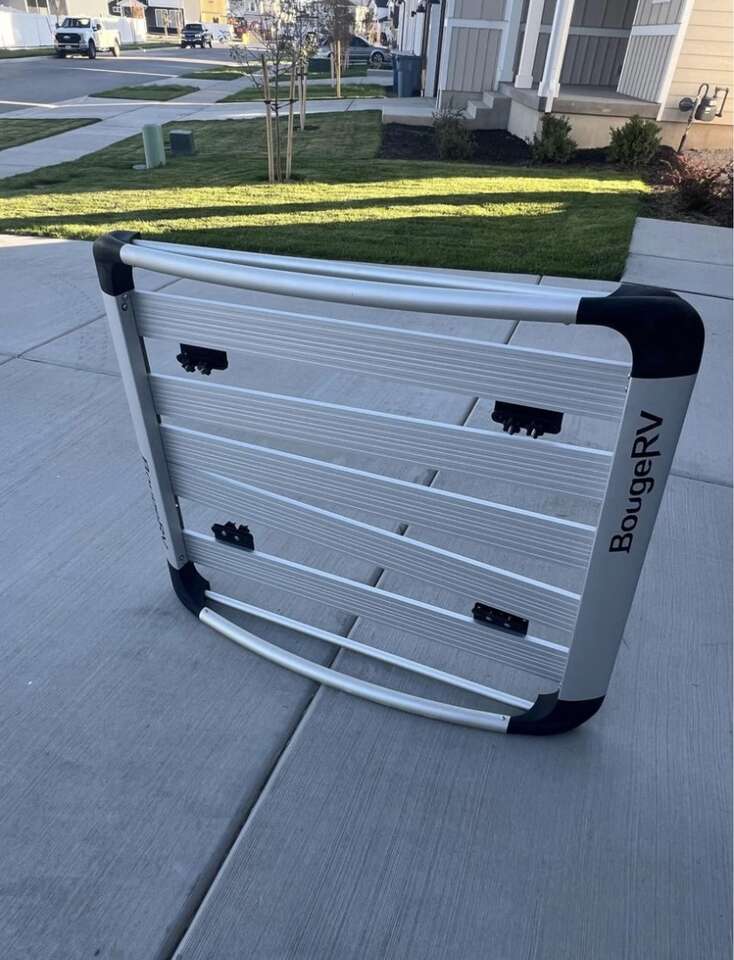 BougeRV roof cargo basket rack 3ft wide x 4ft long x 8 inches high Mounting hardware is complete and attaches to all crossbars like new condition only stayed in garage for a while