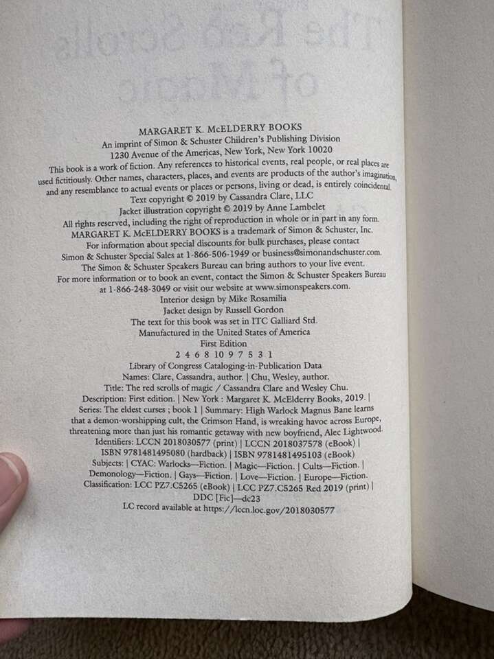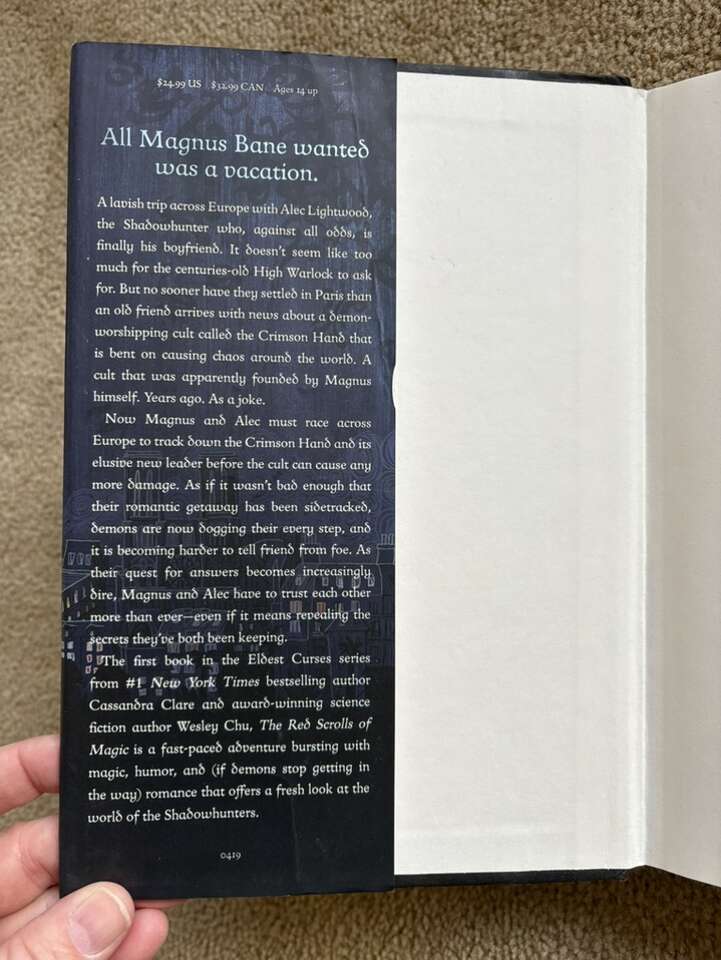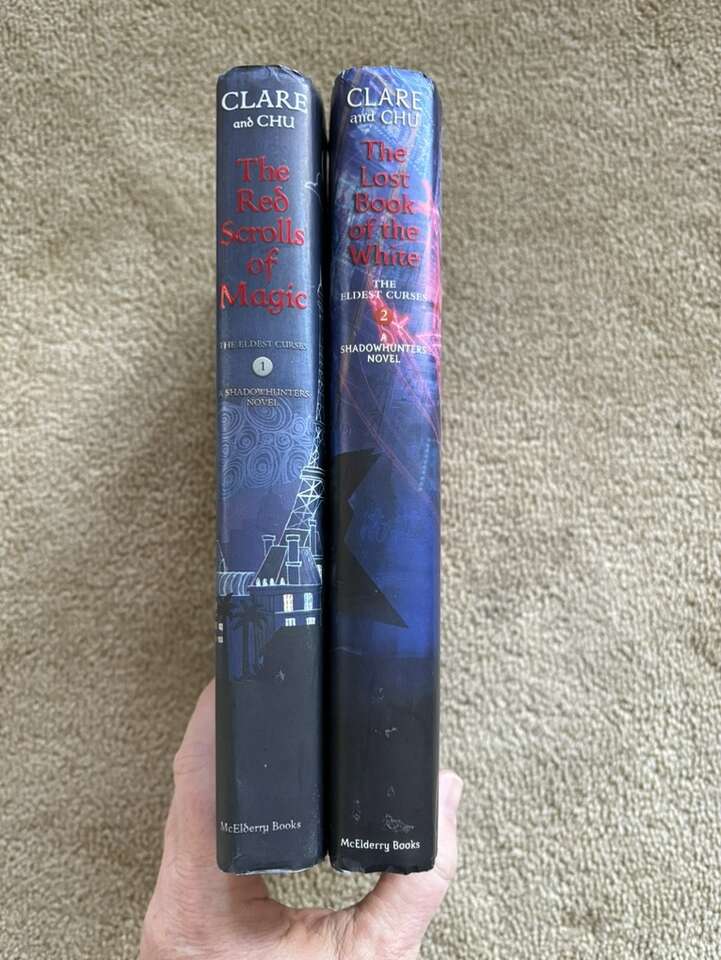The Eldest Curses Books 1-2, by Cassandra Clare and Wesley Chu: The Red Scrolls of Magic (2019, 350 pages), and The Lost Book of the White (2020, 368 pages). Shadowhunters Novels. Companions to The Mortal Instruments, The Infernal Devices, and The Dark Artifices series. Hardcovers in excellent condition, including dust jackets. Text only. Cash or Venmo.