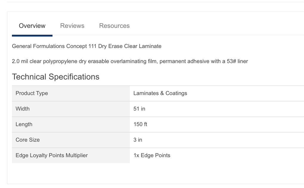 General Formulations 111 EraseMark T™ Dry Erase - 51in x 150ft General Formulations 111 is a 2 mil clear film coated with a permanent acrylic pressure sensitive adhesive on a smooth paper liner designed for use with dry erase markers. ...