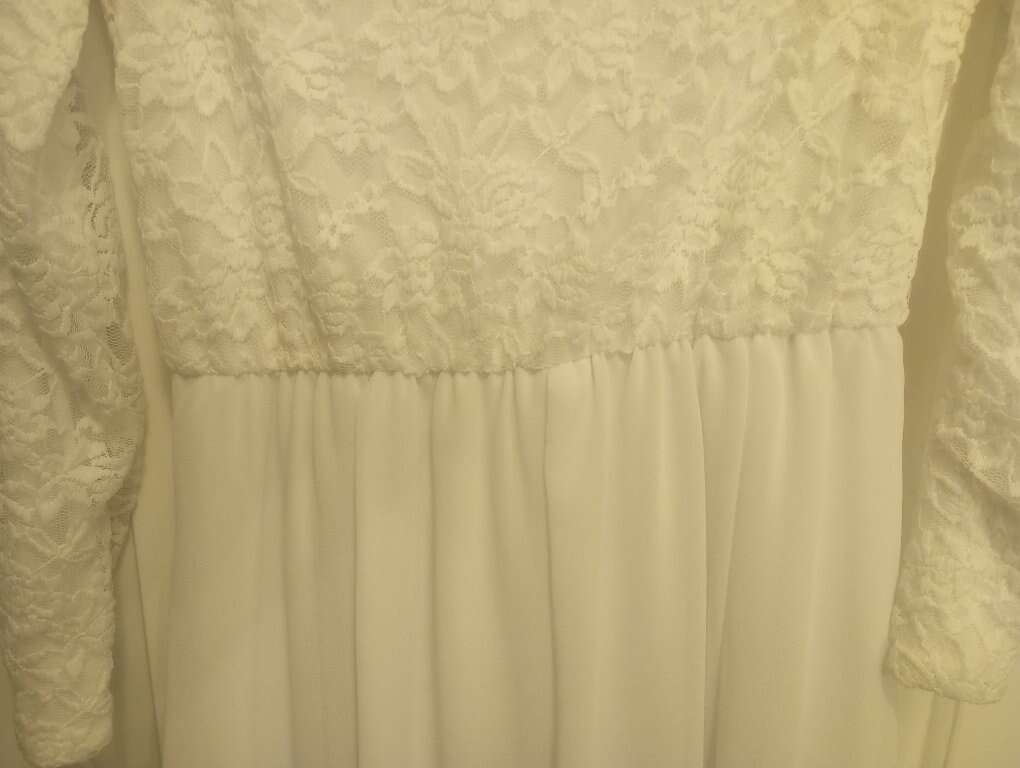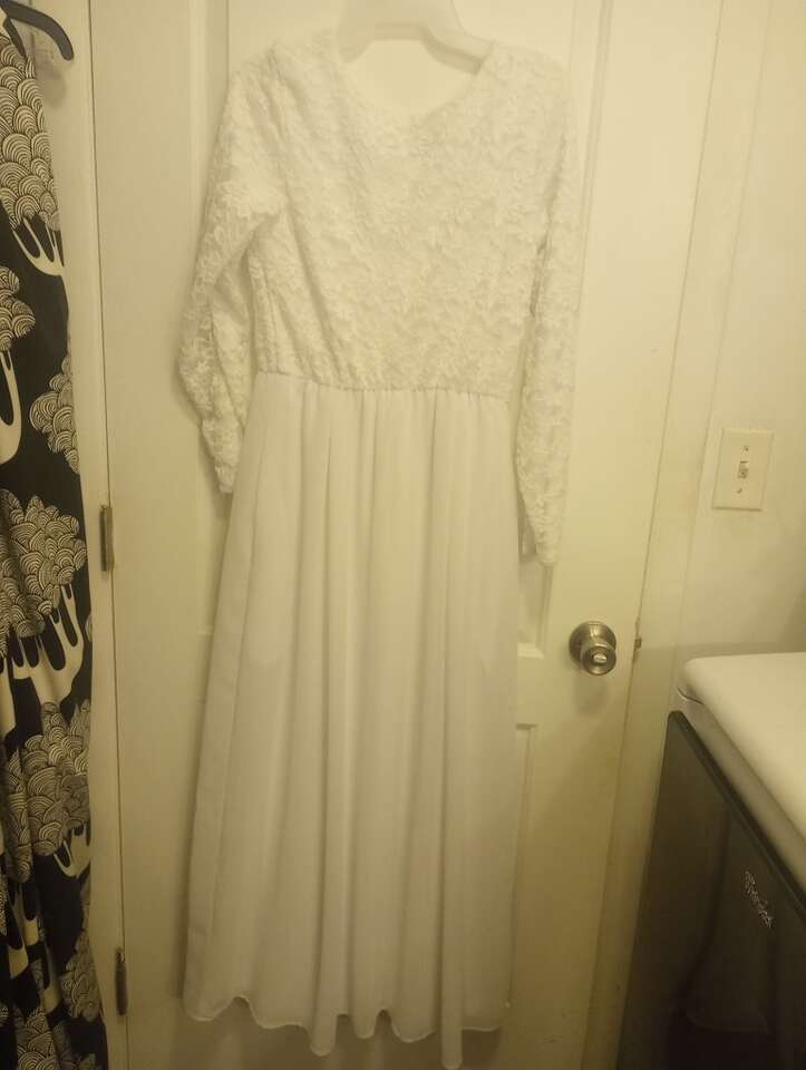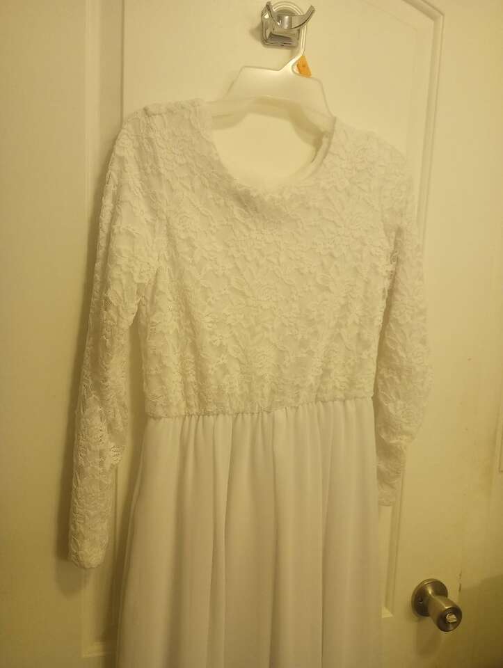 VenmoLike-New Women's Temple Dress~ Jody brand, made in the USA. In Like-New, excellent condition. No signs of wear. Has a lace bodice with long sleeves and has pockets. No zippers or clasps, it's slip-on. You will need a slip to wear under. Worn once. Tag with size has been removed but I think it's a size Medium but it's possible that it could be a Small. Happy to take measurements if requested. You are welcome to try on if needed. From a pet and smoke-free home. $35 cash or Venmo. Will hold with Venmo or you can pay when you come pick up. Feel free to check out my other ads~lots of pretty dresses and other women's clothes for sale in same size.