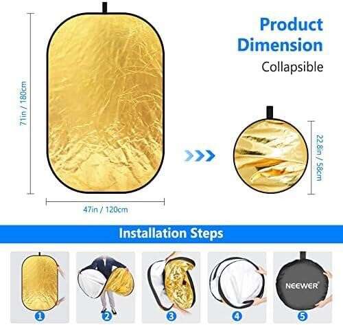 NEEWER 47 x 71 inch/120 x 180cm Light Reflectors for Photography, Portable 5 in 1 Collapsible Multi Disc with Bag - Translucent, Silver, Gold, Black, White Diffuser for Studio and Outdoor Lighting