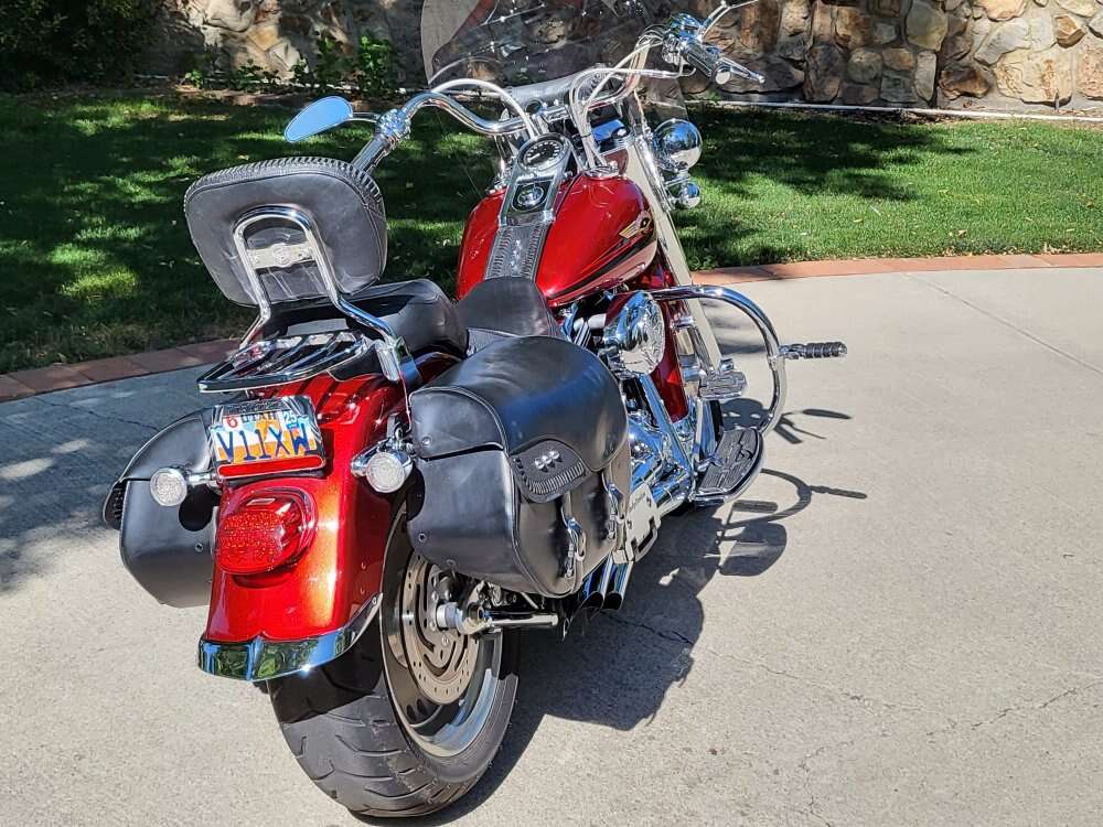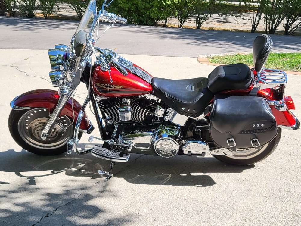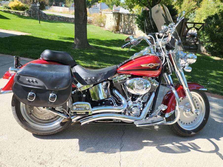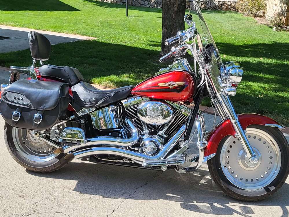 Fat-Boy 1600cc lots of crome, sparkly paint, lots of extras. Asking $8300 OBO.