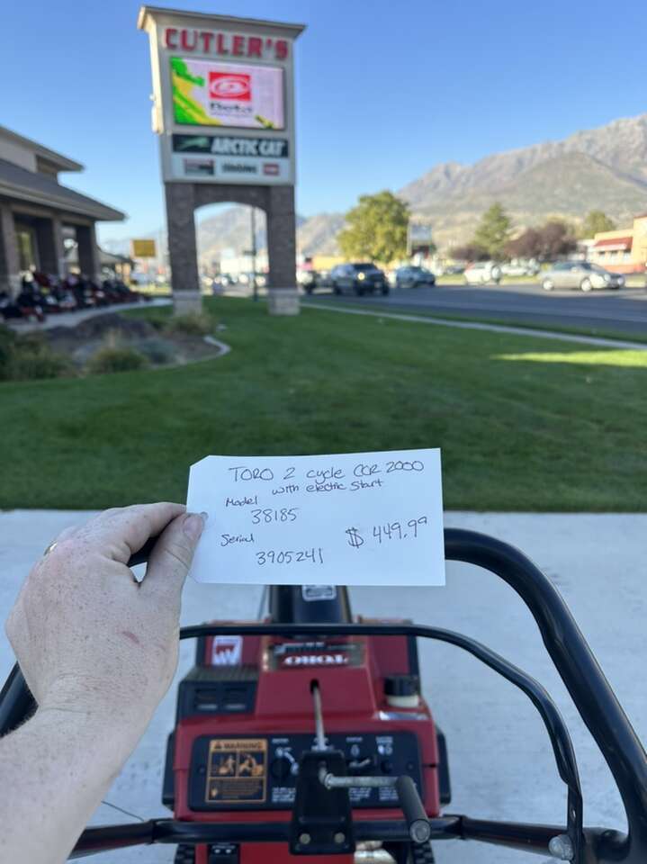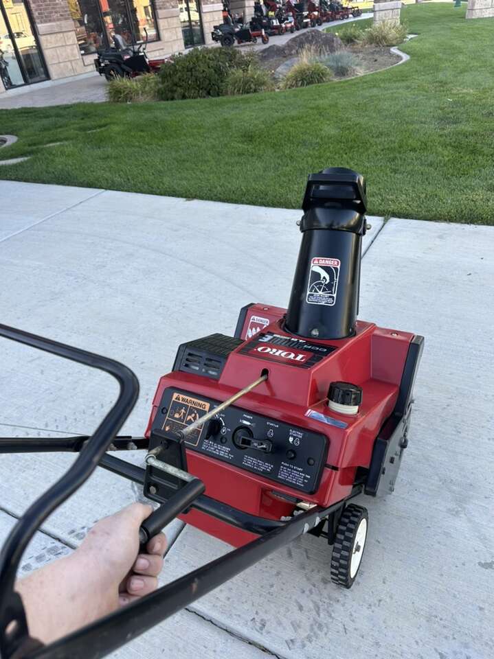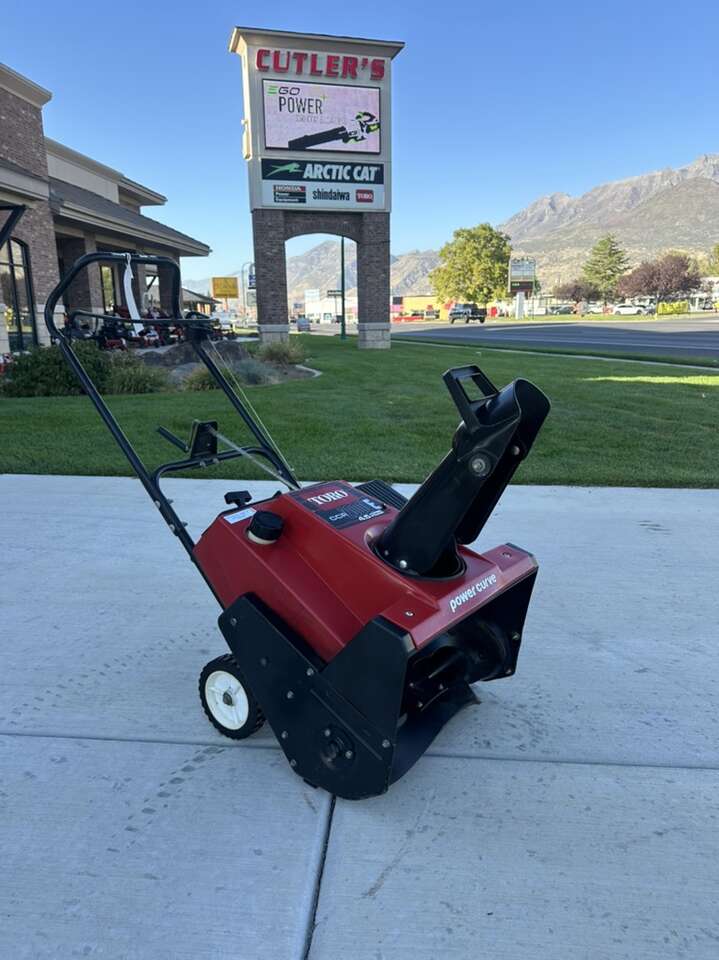 This is a used Toro single stage snowblower that has been looked over by professional power equipment mechanics and is in great working condition. This model has new paddles installed, allowing for smooth snow removal. Other features of this model include: -Chute directional crank allowing for convienient direction changes -4.5 horsepower 2-stoke engine -Electric start option for easy starting