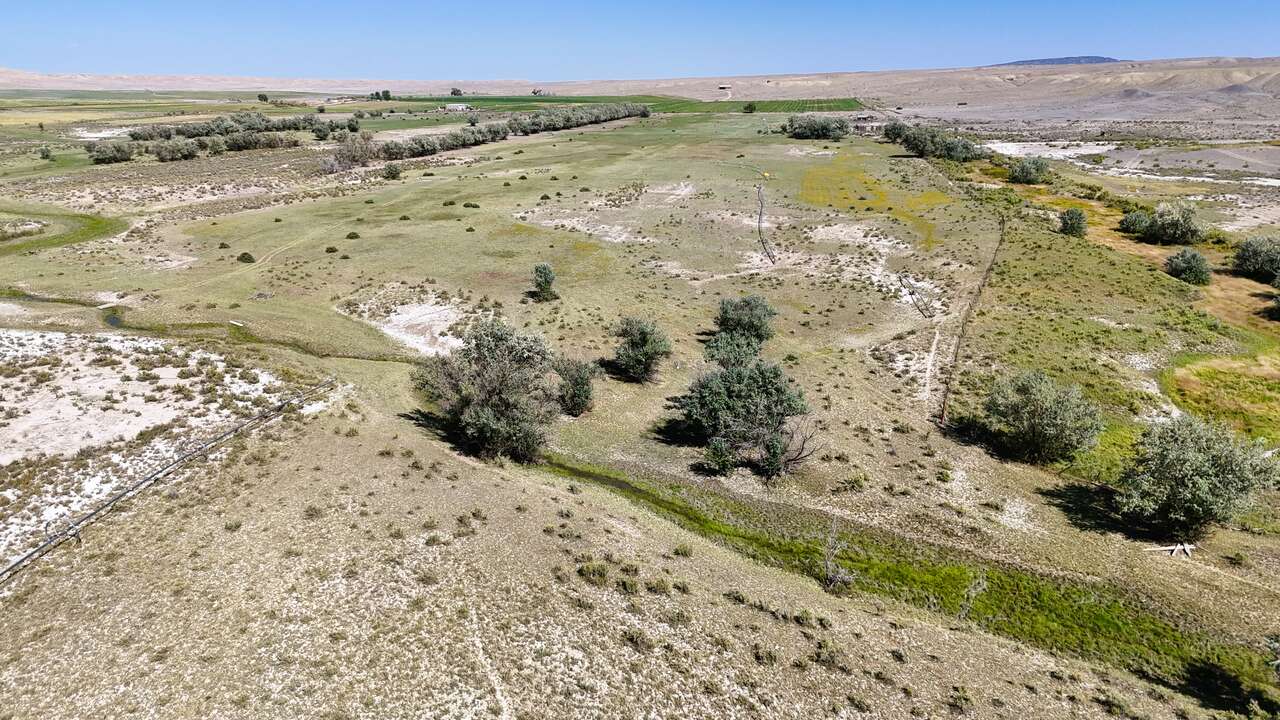 Over 33 secluded acres of farm ground and 114 Class A and 6 Class B water shares of the North Ditch of Huntington-Cleveland Irrigation Company are included in this sale. The property is located on the south end of Buffalo Hollow just outside of Lawrence. This lot is at the end of county RD 333 offering peaceful seclusion for you and your family. Approximately 24 acres of the property are tillable, with the remainder being brush ground, mature Russian Olives, and a small piece of creek bottom on the far west end. The property has a working pressurized irrigation system installed and the wheel lines are included in the purchase price along with the water shares which are more than enough water to farm the property. The Southern and Eastern borders of the property have a fence that is in decent working order. Additionally, there is an old home that could be used as a shed/animal barn, along with corrals and a working pen. Buyer is advised that the current fence lines do not appear to run along the property lines and a survey would be highly recommended. Utilities are not close by and the property should be considered ‘off-grid.’ The lot is currently being used to graze some cattle, but with some work, it could be brought back into production in short order.