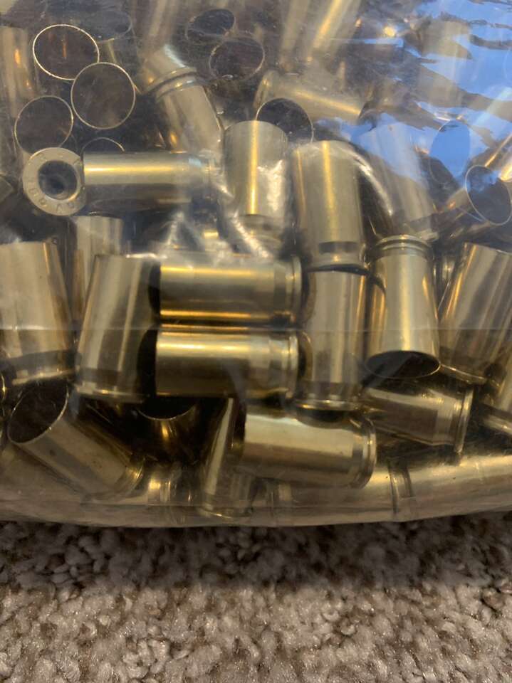 380 auto range brass deprimed and sized. Stainless steel pin cleaned so clean inside and out and shiny. No mouth flare so you can put as much or as little as you want.