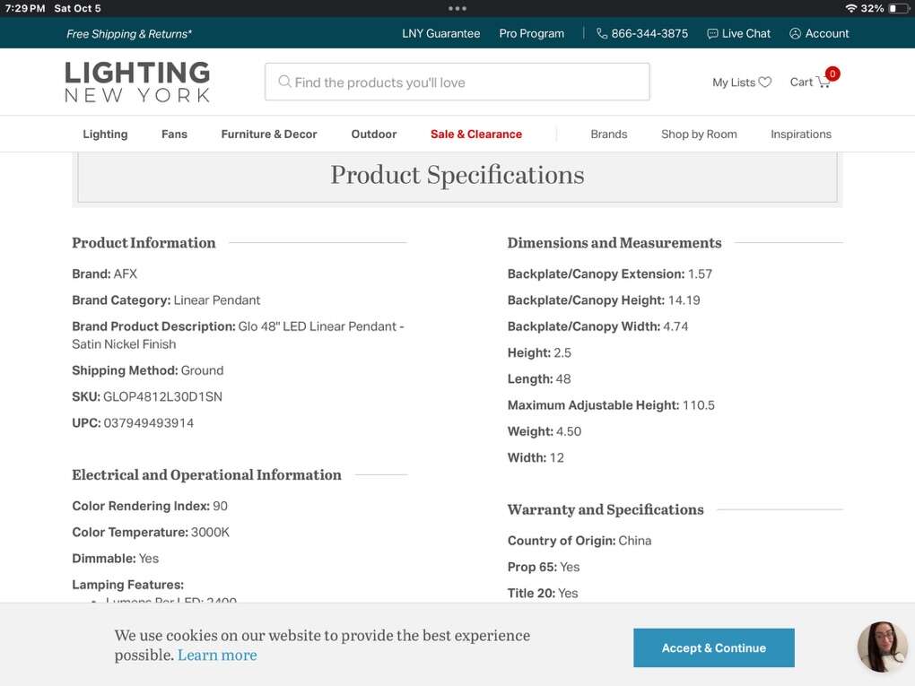 AFX LED Indoor Luminaries Ceiling Mount Pendant 120 VAC / 60 Hz