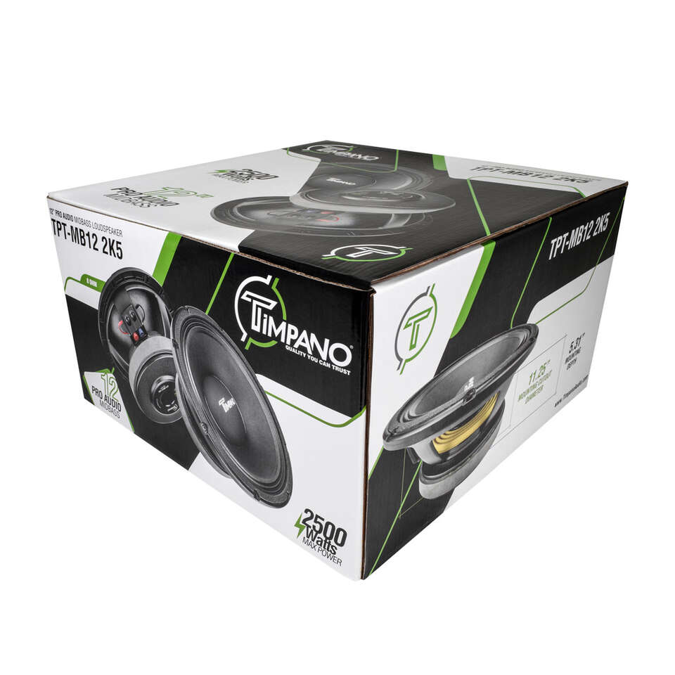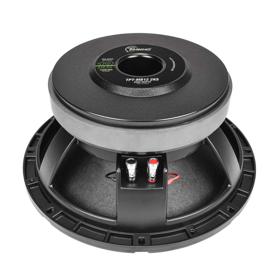 VenmoNew! 2 Available TPT-MB12 2K5 – 12″ 2500 Watt Competition PRO Audio Midbass Speaker Loudspeaker. Price is per speaker. We will take cash or Venmo. TPT-MB12 2K5 – 12″ Competition PRO Audio Midbass Loudspeaker Built to last, this 12″speaker is recommended for professional audio systems as a mid bass (with high-pass filter of 95Hz at 12dB) in vented enclosures. Can handle up to 2500 Watts Max power, able to deliver tremendous amount of sound output 4″ voice coil efficiently dissipates heat and prevents sensitivity loss Wide Frequency Response of 60 – 5,500 Hz providing clean, detailed sound reproduction 98 dB sensitivity, more output and high-impact sound High grade soft parts for the best combination for high excursion and durability One of our most powerful midbass PRO Audio loudspeaker, the TPT-MB12 2K5, offers outstanding durability. A specially-designed spider suspension is assembled with a resin and combines with the bumped backplate to improve the resistance against failure during intense use. The linear triple-roll suspension offers smooth accurate geometry during hard play, while a large 4″ voice coil results in very high efficiency while providing smooth and accurate midbass response with Xmax of 7 mm. The magnet assembly is attached to a sturdy reinforced cast aluminum frame completes a solid support structure, for long lasting play in most any environment. Specs: 2500 Watts Max Power 1250 Watts RMS Power Impedance: 8 Ohm Sensitivity: 98 dB Frequency Response: 60 – 5,500 Hz Voice Coil: 4” Aluminum Basket with High Strength Ferrite Magnet Sizing: Mounting Depth: 5.31” (135mm) Mounting Cutout Diameter: 11.25″ (286mm) Overall Diameter: 12.60″ (320mm) Weight: 23.40 Lbs