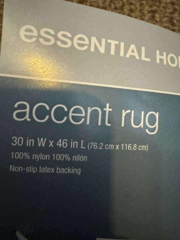 Brand New! Never Used! Accent rug with non slip latex backing. 100% Nylon 30 inches wide. 46 inches long. Smoke/Pet free home.
