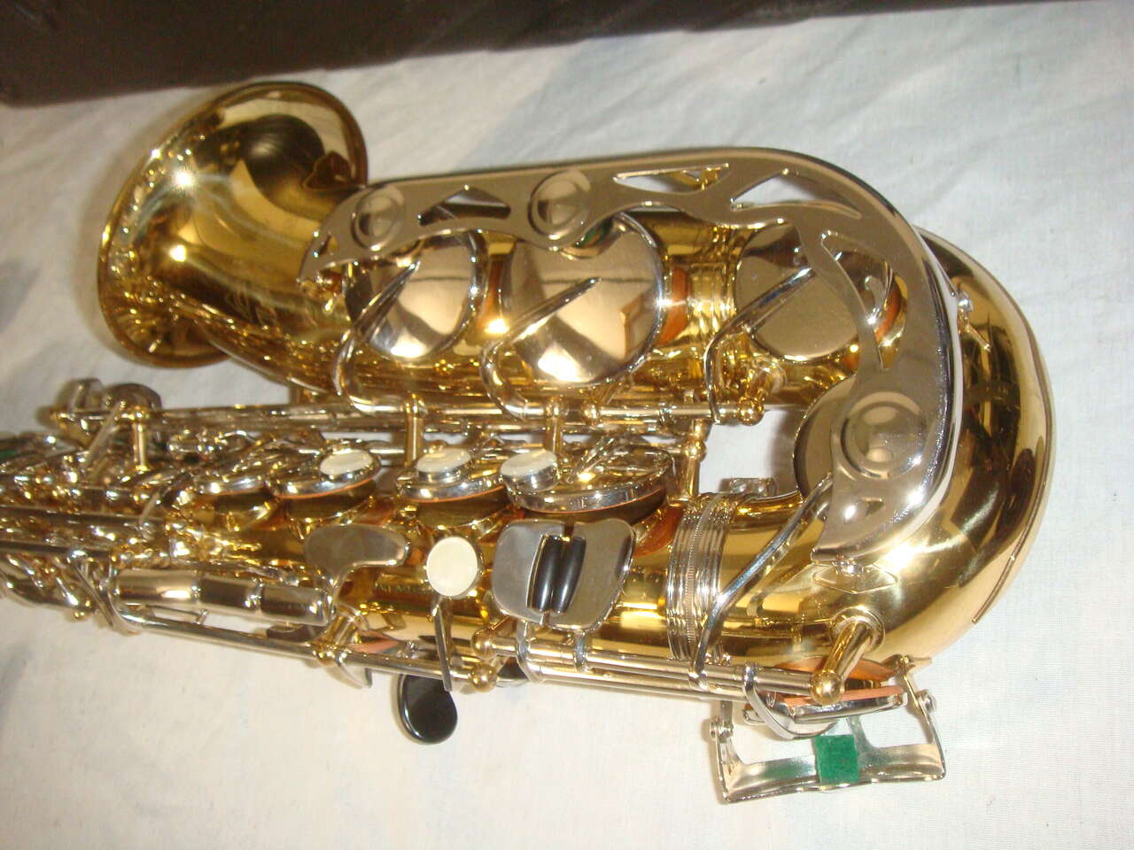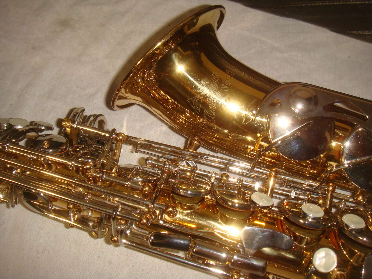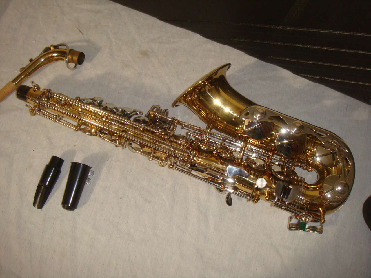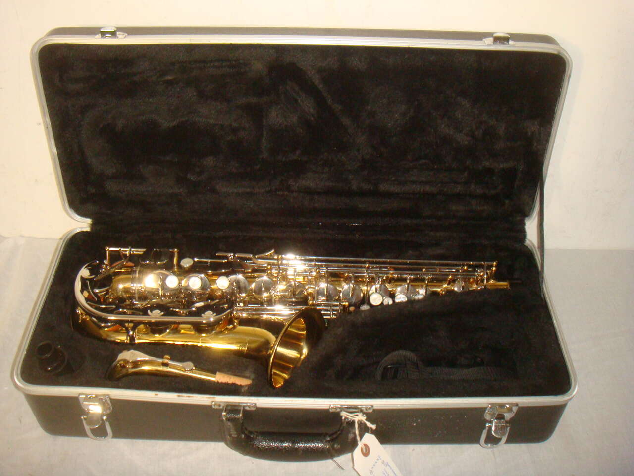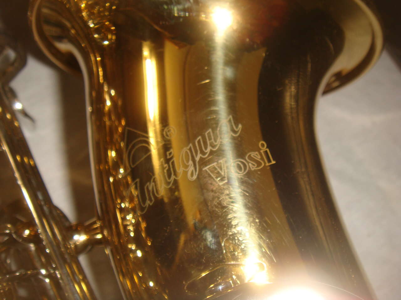 ANTIGUA VOSI 2150 ALTO SAXOPHONE WITH MOUHTPIECE & HARD CASE. This is a used saxophone that has surface marks, some scratches, a couple very minor spots of tarnish/oxidation, and signs of use. The case has one of the feet that cracked arount it and slighty pushed in, as well as a minor bit of cracking on one corner. We'll do our best to show it all in the photos, but it is all cosmetic only and in overall great condition. It has been gone through and fully tested/cleaned. It is a beautiful saxophone that is highly touted for a student model. It's last sale price from the dealer that went through it was $1800, so this is a screaming deal! It comes with everything shown. This is your chance to save big-time so don't miss out!!