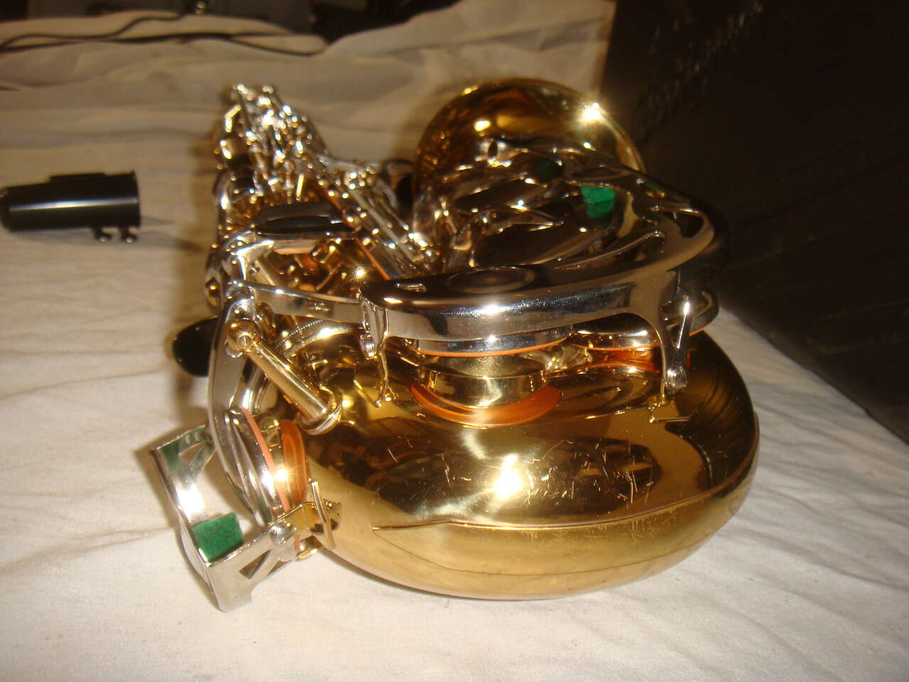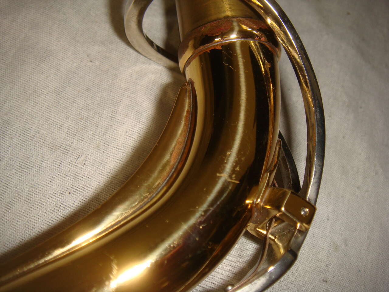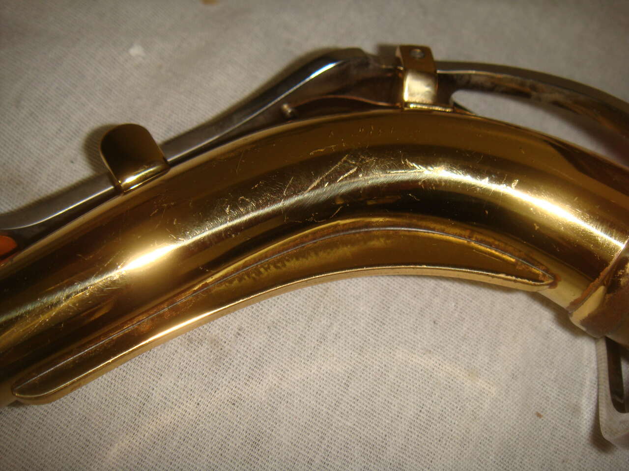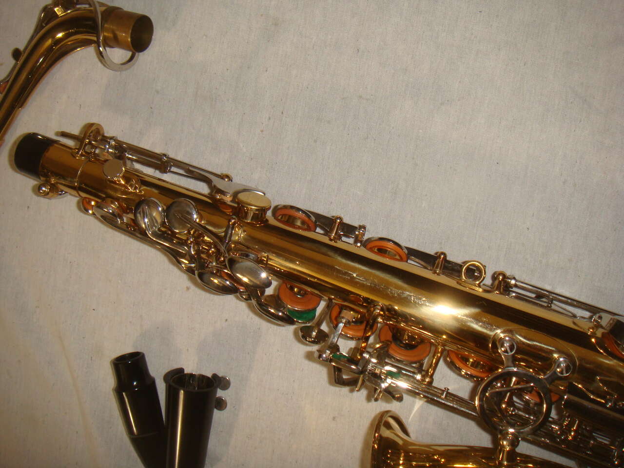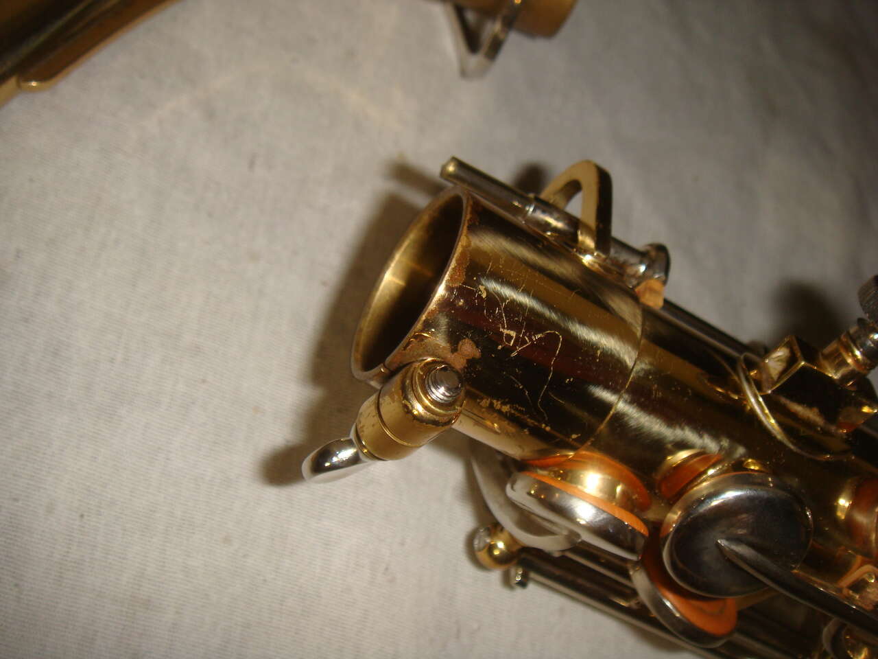 ANTIGUA VOSI 2150 ALTO SAXOPHONE WITH MOUHTPIECE & HARD CASE. This is a used saxophone that has surface marks, some scratches, a couple very minor spots of tarnish/oxidation, and signs of use. The case has one of the feet that cracked arount it and slighty pushed in, as well as a minor bit of cracking on one corner. We'll do our best to show it all in the photos, but it is all cosmetic only and in overall great condition. It has been gone through and fully tested/cleaned. It is a beautiful saxophone that is highly touted for a student model. It's last sale price from the dealer that went through it was $1800, so this is a screaming deal! It comes with everything shown. This is your chance to save big-time so don't miss out!!