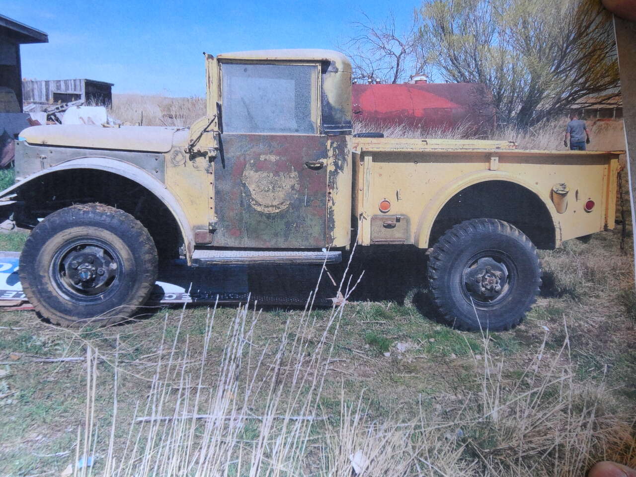This is a Military surplus item. Year is possibly a 1954 but unknown which model of the M-37 series this is. Except for the seats, the parts not seen in photos will be included. All metal is in good condition with some areas of rust. This vehicle was running/driveable when last parked. No title available. Sold as is. Will consider any offer(s).