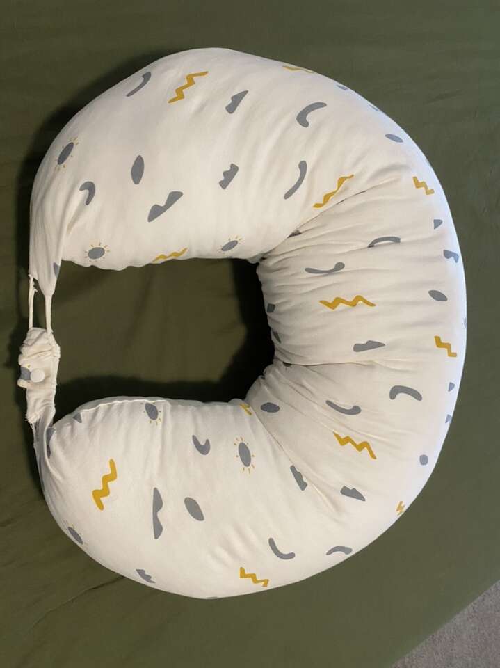 Pillow and cover just cleaned. Small stress tear by looping strap, can be repaired. Best pregnancy pillow I ever used, long enough for belly and legs, not too long to take over entire bed. Cash or Venmo only. Pickup in Hyrum. Text is easiest, thanks!