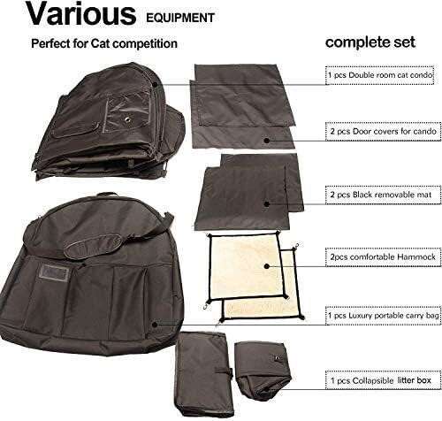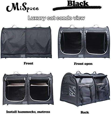 Mispace Portable Twin Compartment Show House Cat Cage/Condo - Easy to Fold & Carry Kennel - Comfy Puppy Home & Dog Travel Crate with Portable Carry Bag/Two Hammocks/Mats and Collapsible Litter Box