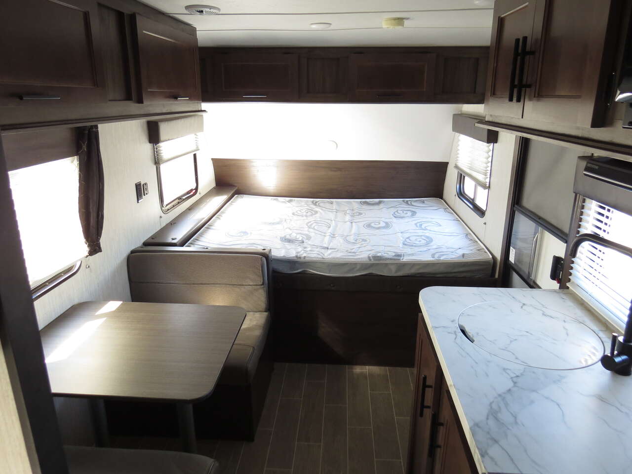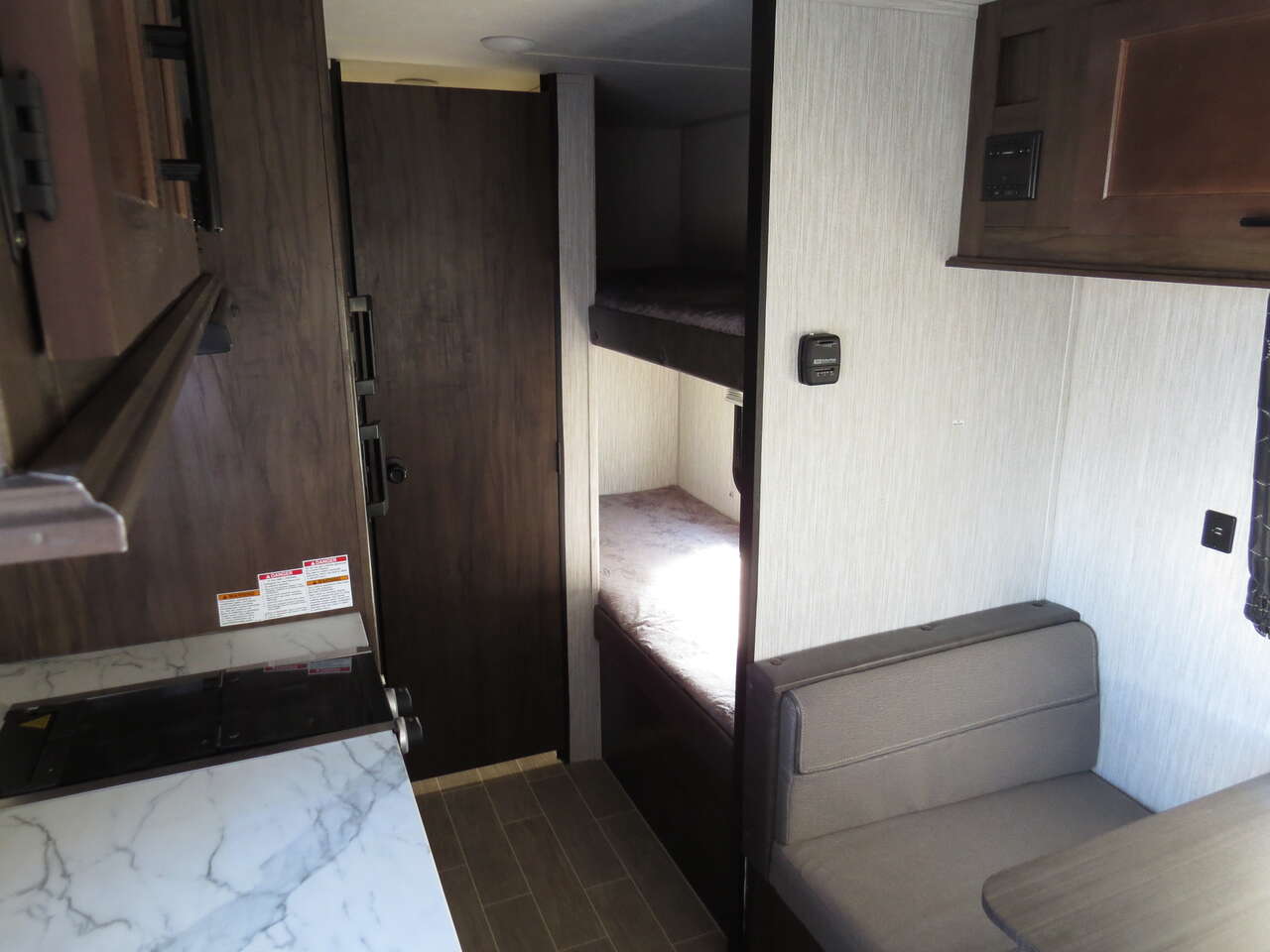 LITE WEIGHT ONLY 3,300 lbs! BUNKS, BIG Fridge, Front bed, Rear Corner Bathroom, Lots of storage , Dinette makes down, Electric patio awning, A/C unit on top of the roof, and Heat.Location: 50 S Frontage Rd, Springville Dealer#832B Quality RV -Financing Available-