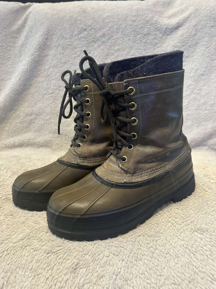 LLBean men’s size 7 khaki winter boots with rubber foot bed and leather uppers and wool pull out liners. These are in excellent condition, see photos for details. I take cash or Venmo, but cash is preferred. Text is best. 801-201-4446. Check out my other ads for additional sizes and styles.