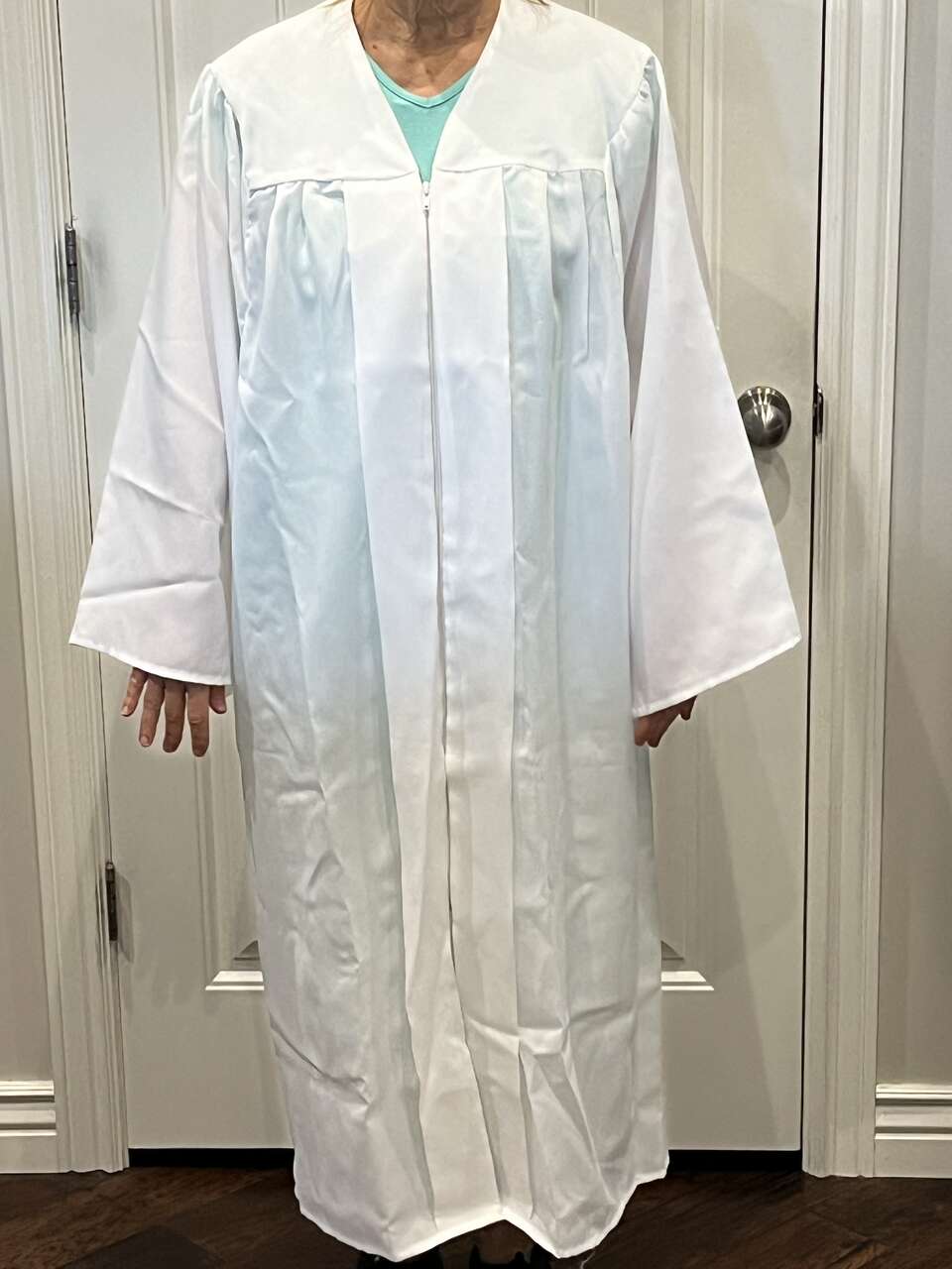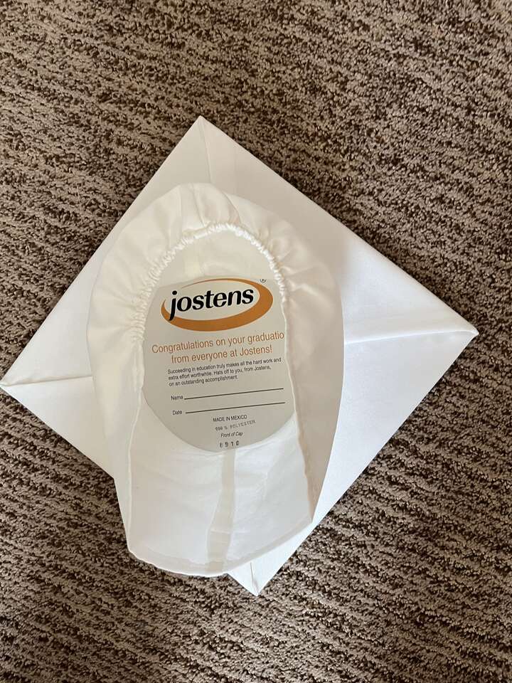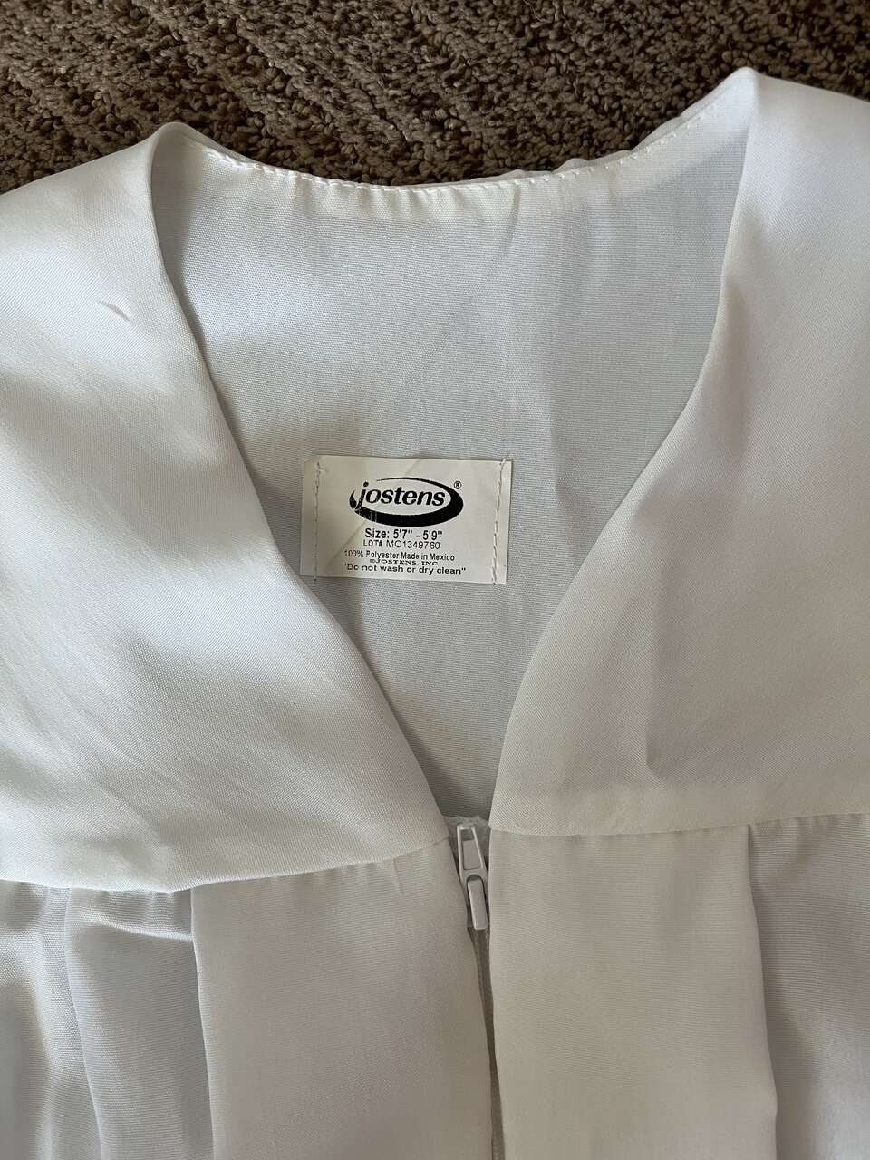 Graduation Cap and Gown. The color is White and the size is 5'.7 to 5'.9. It was worn once and is in excellent condition. Please look at my other ads.