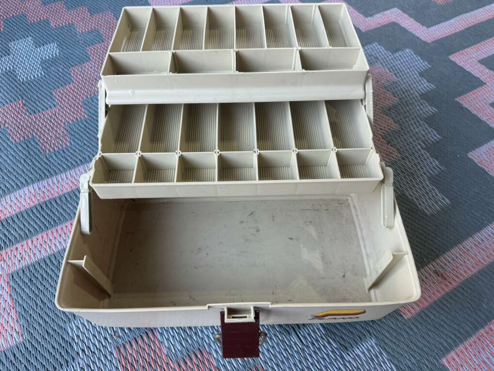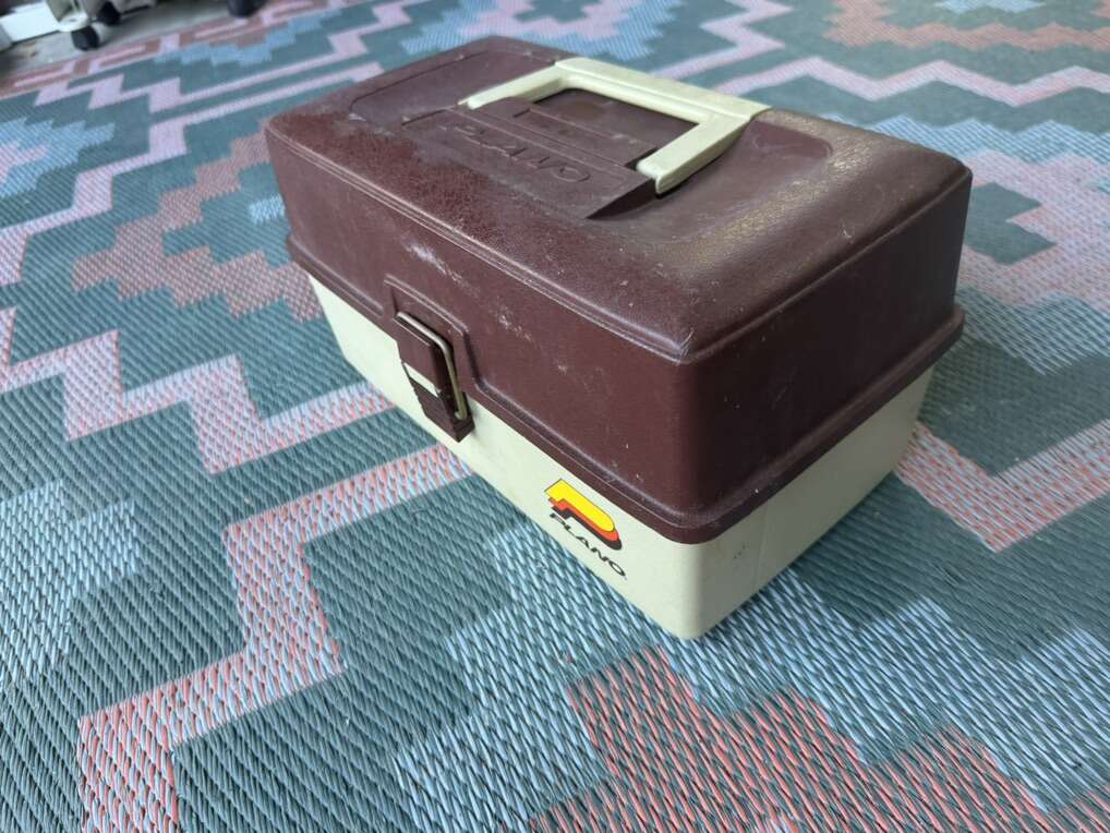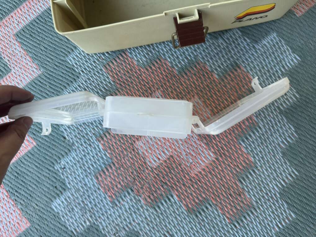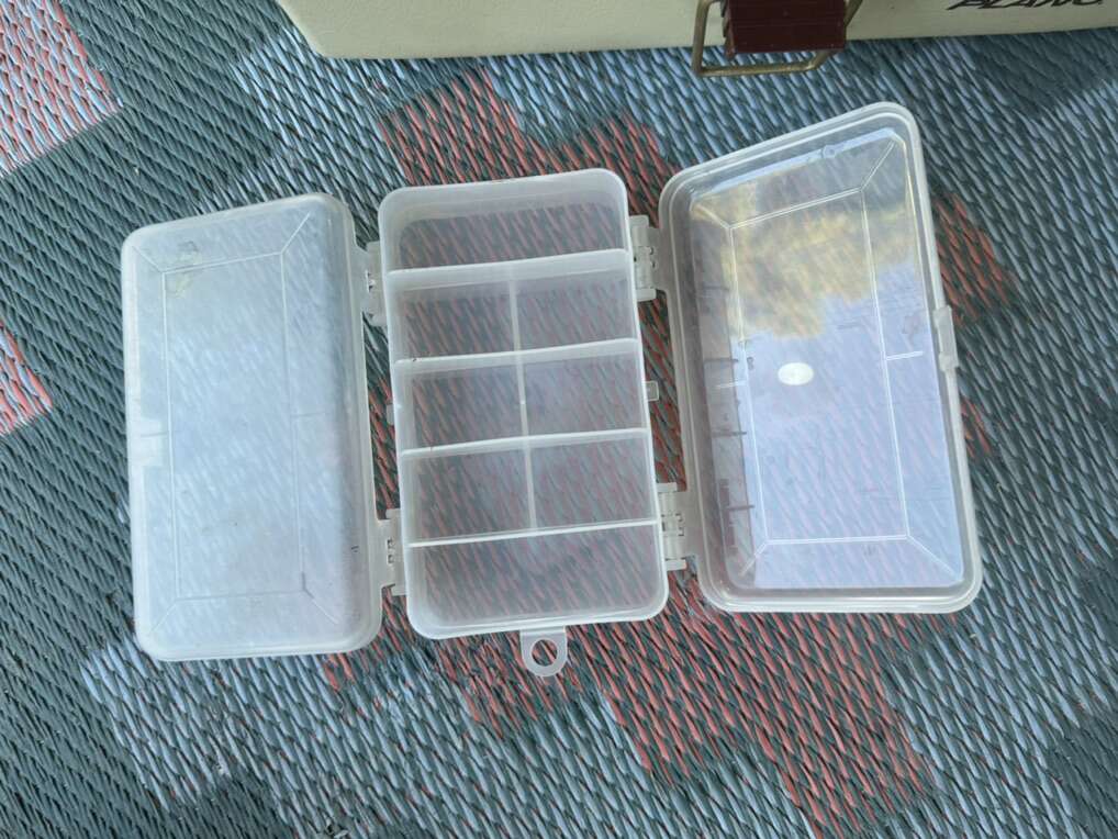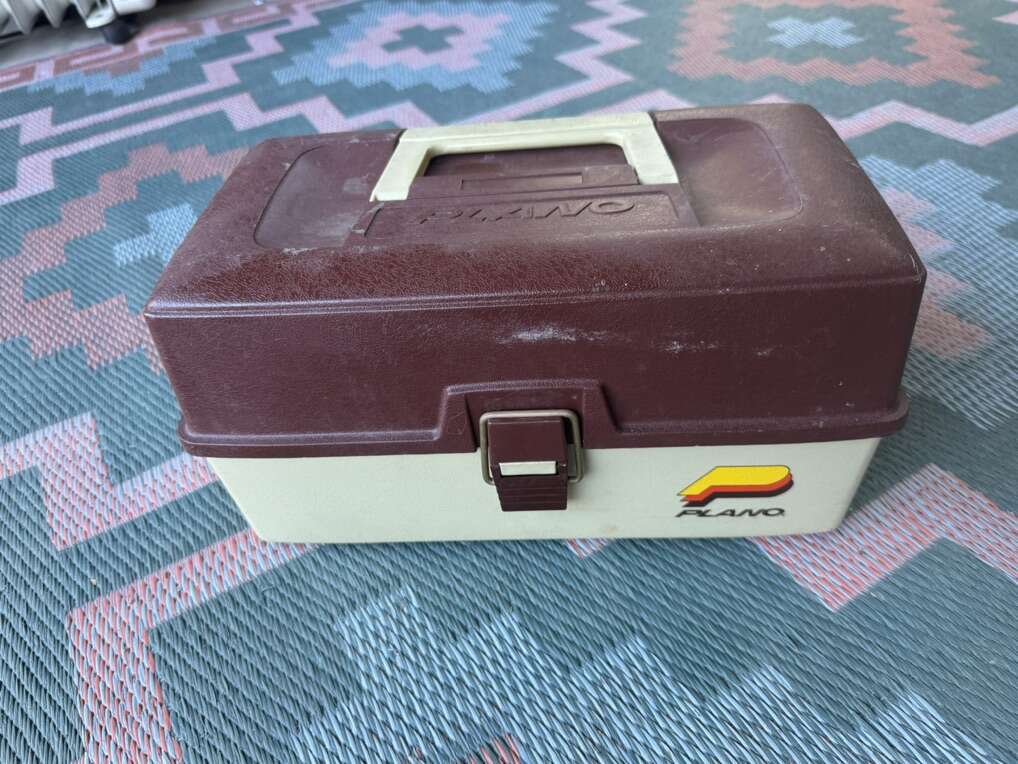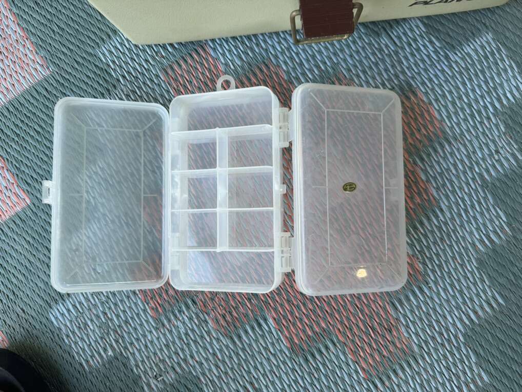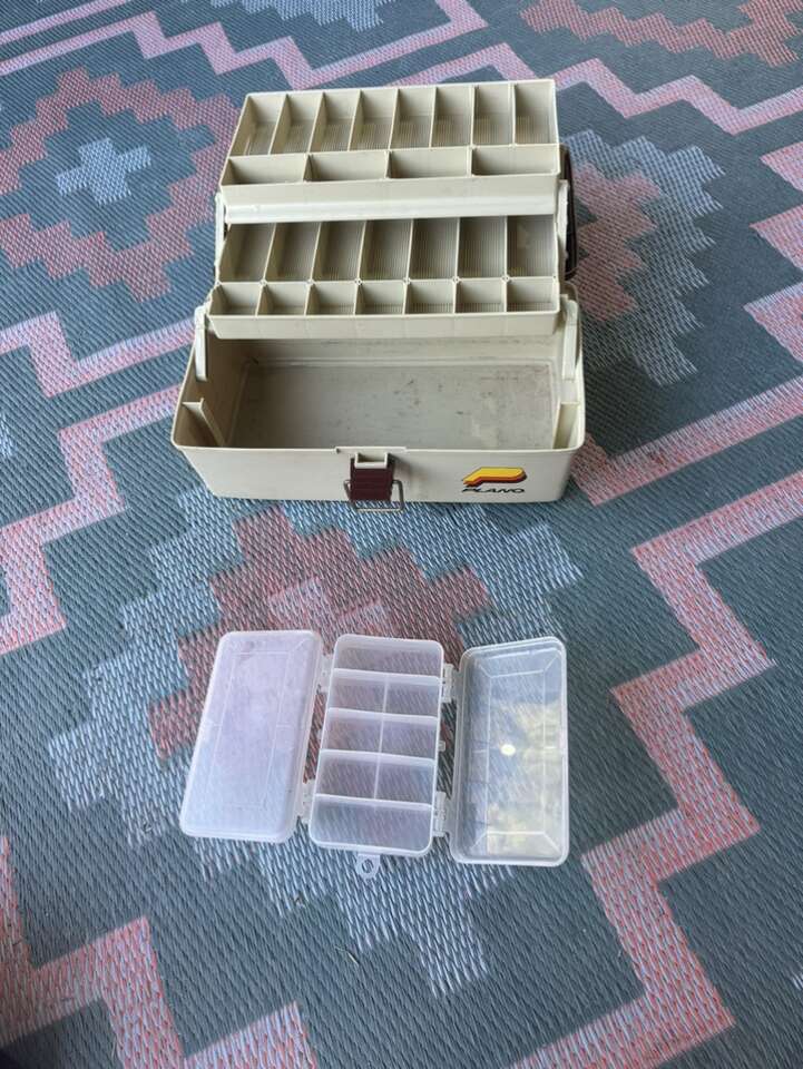 Selling these 2 fishing boxes together. A bigger Plano and a smaller clear plastic wine that opens from both sides.