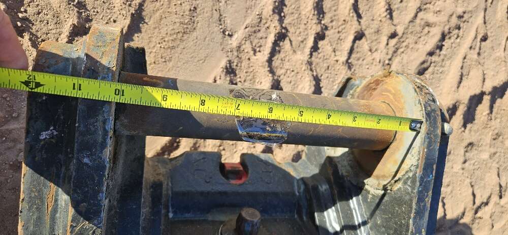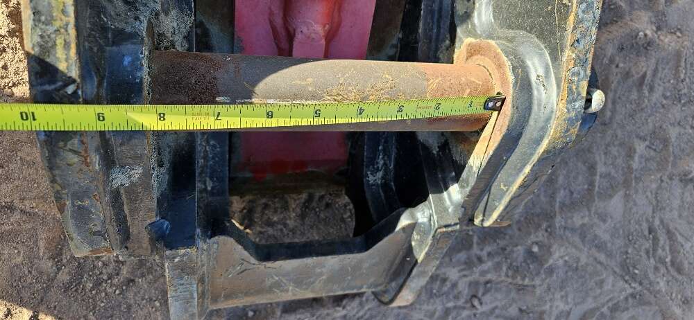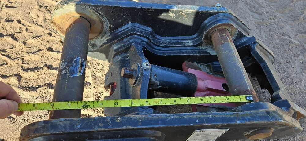 CAT Backhoe Quick Coupler 50 mm Front Pin Diameter 45 mm Back Pin Diameter 10" Between the Ears on the Front 8 1/8" Between the Ears on the Back 13 1/2" Center to Center of Pins