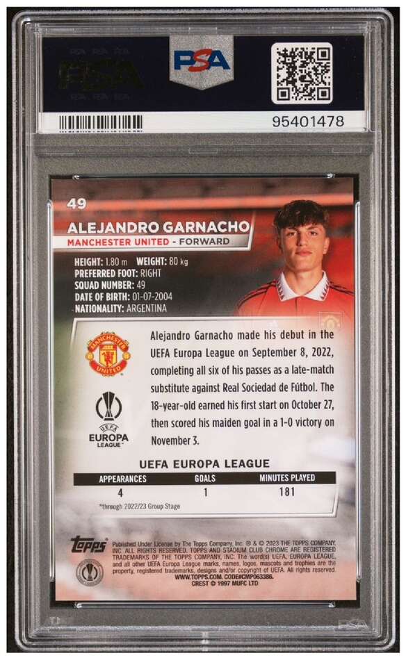 2022-23 Stadium CC UCC Alejandro Garnacho Members Only #49 PSA 10