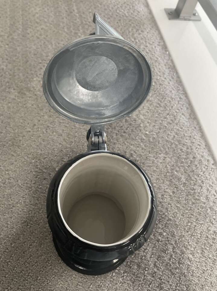 Not only is this stein a great addition to any collector's shelf, it also serves as a functional drinkware piece. Its large size allows for generous servings of your favorite beverage. Don't miss out on this unique and highly sought after item.