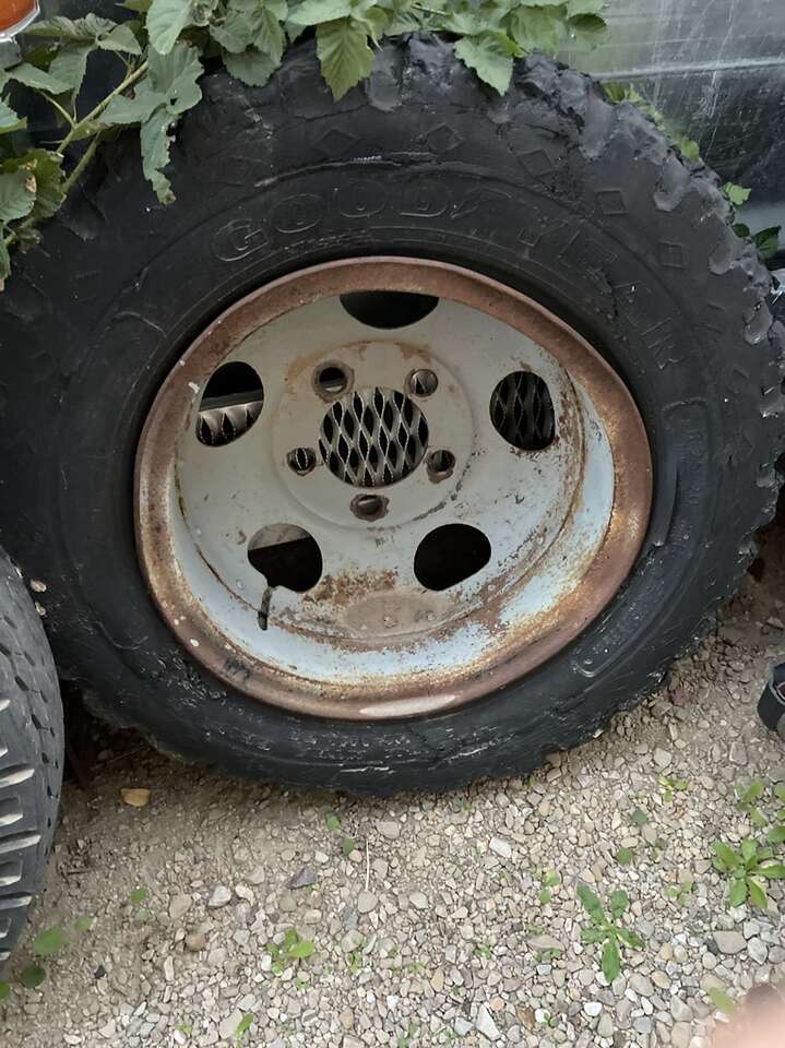 20 in with 6 1/2 in center hole some tires hold air and useable