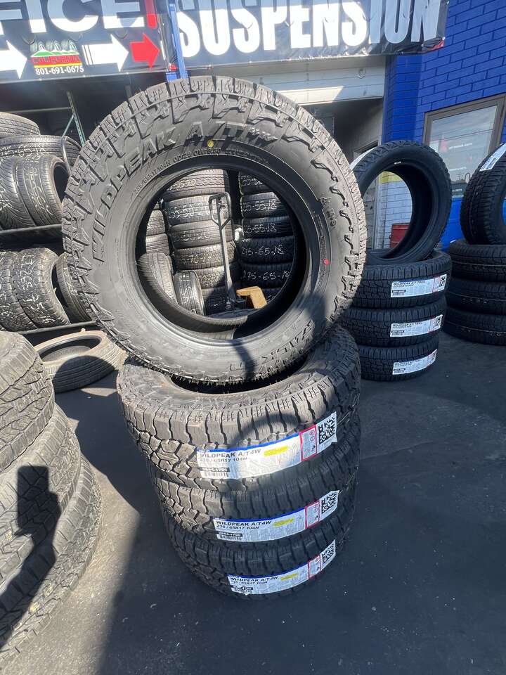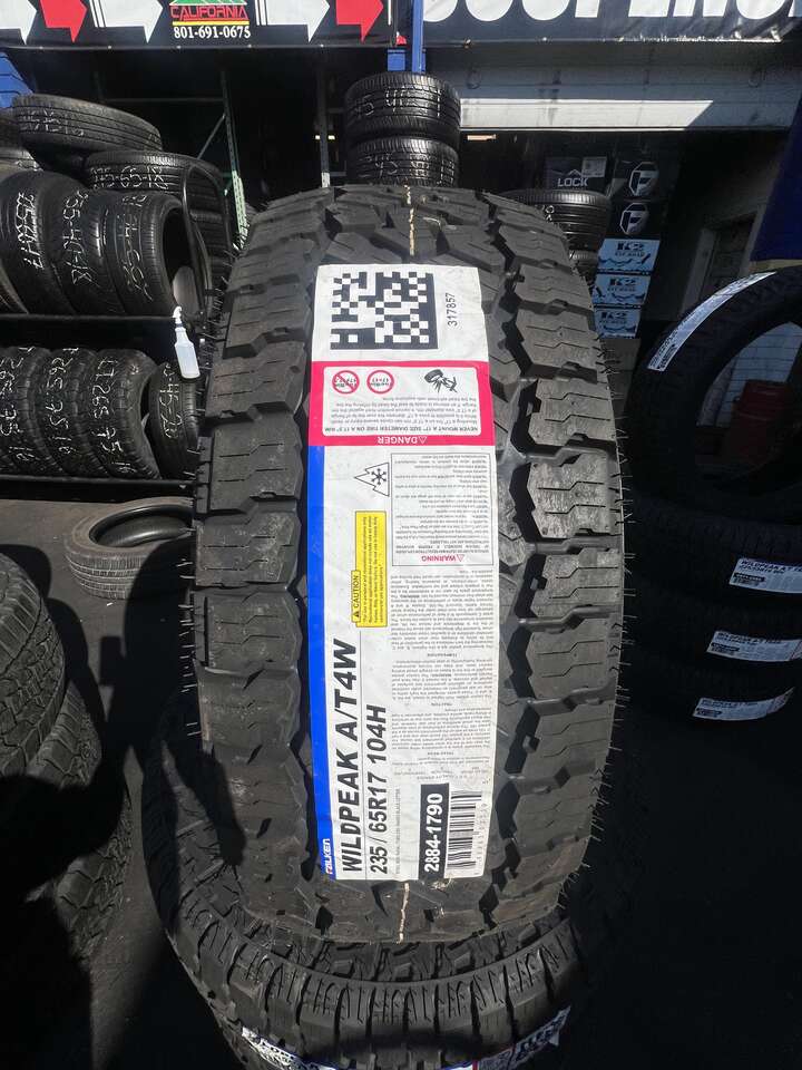 SET OF 235/65R17 FALKEN WILD PEAK A/T4 WITH 55.000 MILES WARRANTY AWESOME DEAL . ASKING PRICE OF $898.00 OUT THE DOOR , INCLUDES YOUR TAX, WE ALSO OFFER FREE INSTALLATION . HABLAMOS ESPANOL. WE CARRY OVER 200 SIZES AND CAN GET ANY MAJOR BRAND TIRES! WE ARE ALSO DOING ALIGNMENTS, BRAKES AND SHOCKS. FINANCING OPTIONS AVAILABLE. NO CREDIT CHECK!!! CALIFORNIA TIRES & WHEELS 399 S STATE STREET OREM UT 84058 (801)691-0675