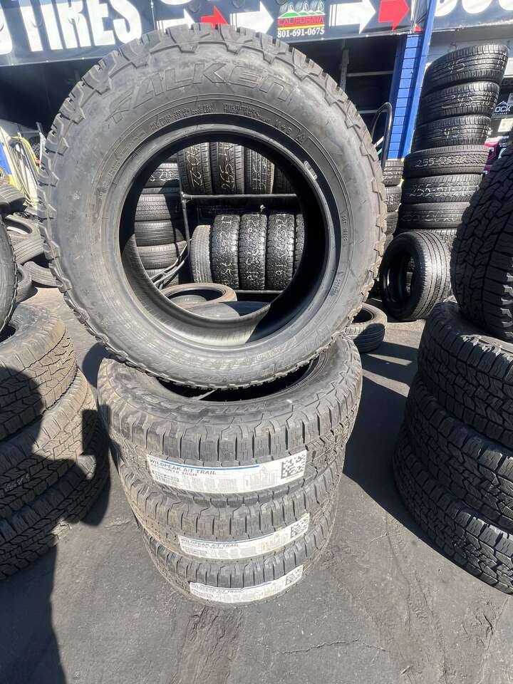 SET OF 245/60R18 FALKEN TRAIL A/T WITH 55.000 MILES WARRANTY AWESOME DEAL . ASKING PRICE OF $998.00 OUT THE DOOR , INCLUDES YOUR TAX, WE ALSO OFFER FREE INSTALLATION . HABLAMOS ESPANOL. WE CARRY OVER 200 SIZES AND CAN GET ANY MAJOR BRAND TIRES! WE ARE ALSO DOING ALIGNMENTS, BRAKES AND SHOCKS. FINANCING OPTIONS AVAILABLE. NO CREDIT CHECK!!! CALIFORNIA TIRES & WHEELS 399 S STATE STREET OREM UT 84058 (801)691-0675