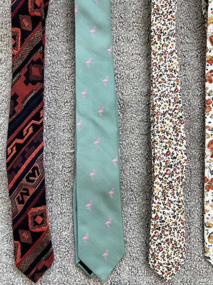 Venmo$5 each. Only the second dark floral one and the Aztec embroidered tie are left. Cash or Venmo. Will hold with Venmo payment.