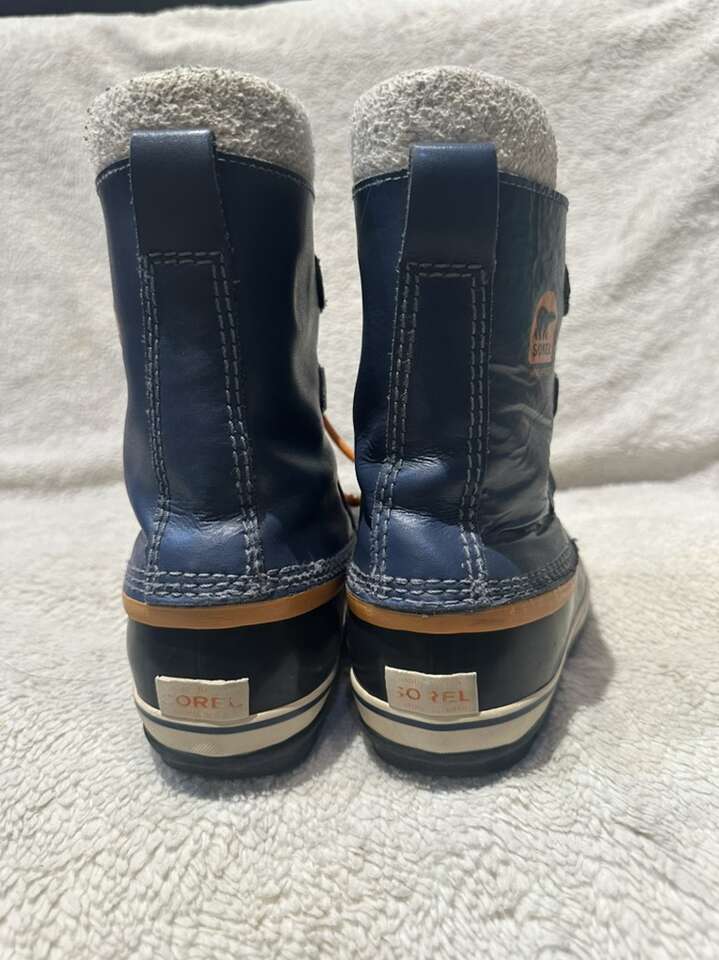 Sorel youth, size 5 waterproof winter boots with blue leather uppers and black rubber foot bed and orange trim. These are in good condition, see photos for details. I take cash or Venmo, but cash is preferred. Text is best. 801-201-4446. Check out my other ads for additional sizes and styles.