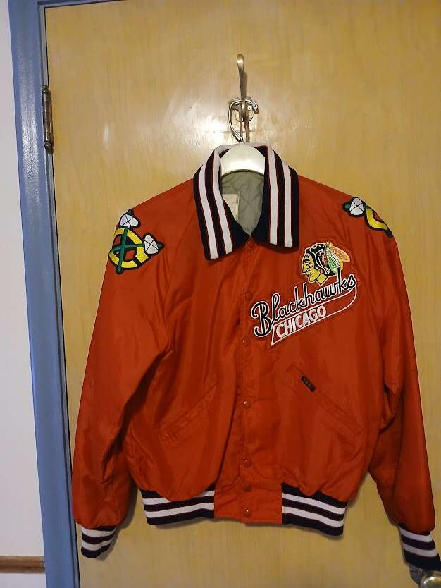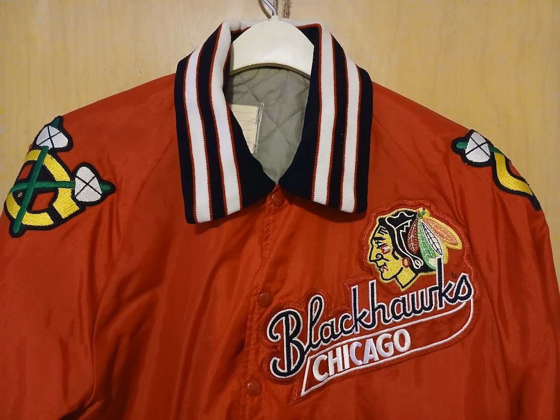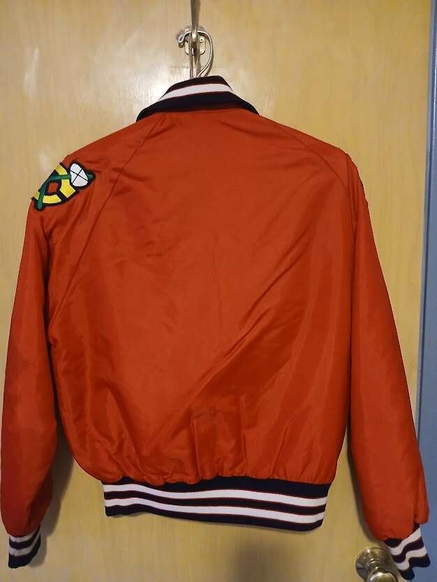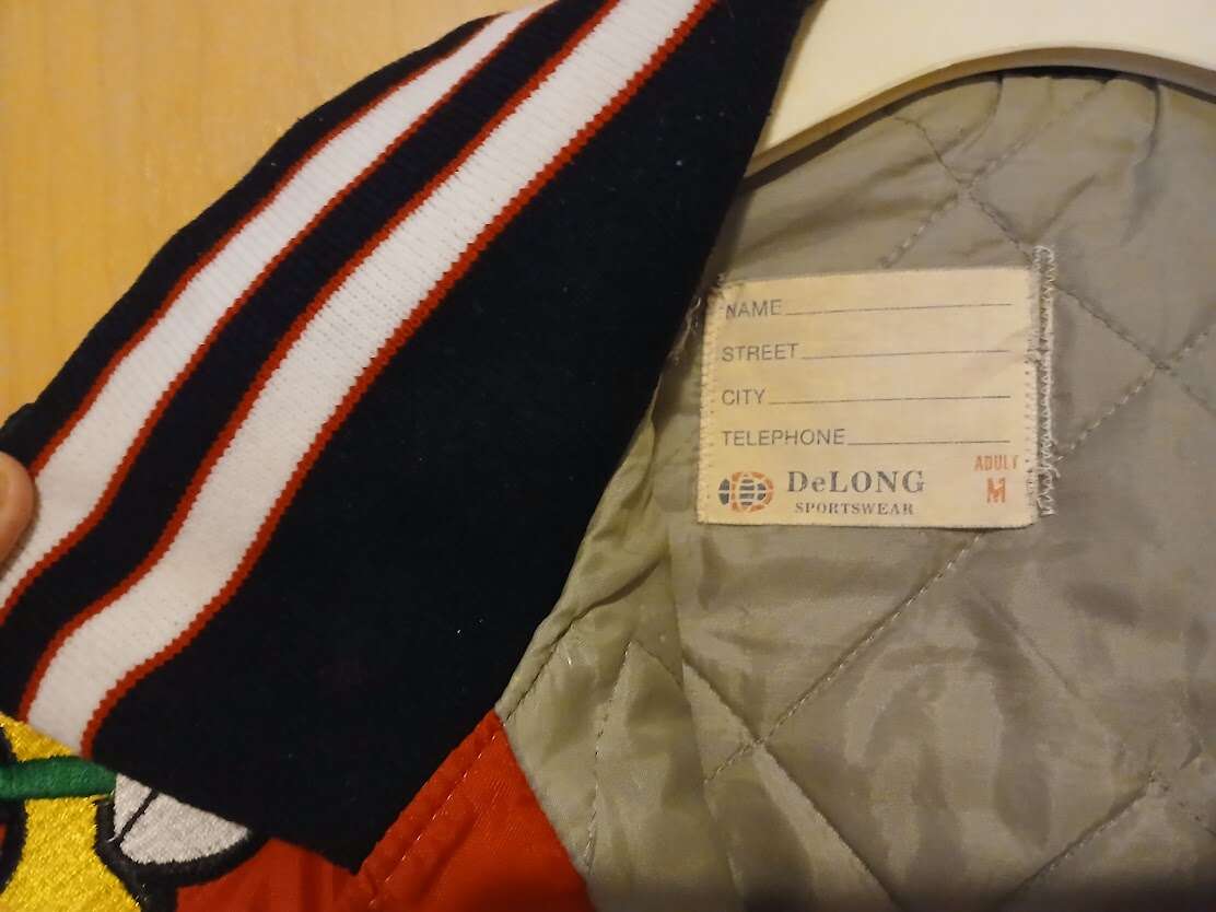 VenmoVintage Gunzo’s 1980’s DeLong Chicago Blackhawks NHL Nylon Bomber Jacket Black Size M. 2 pockets and snap button closures. Lined in lightweight poly fleece. Very clean. Mint condition.