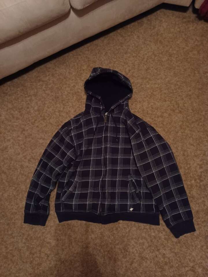 Black, gray & white boys Surplus jacket. Size large 10/12. Very warm inside coat.