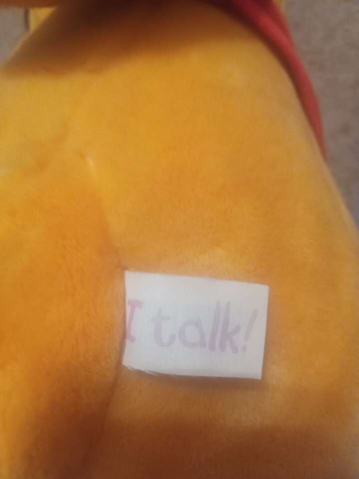 Talking, stuffed Pooh Bear. Just press tummy & says 5 different phrases.