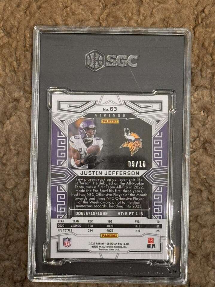 2023 Obsidian Justin Jefferson Electric Etch Asia Gold Flood /10 #63 SGC 9