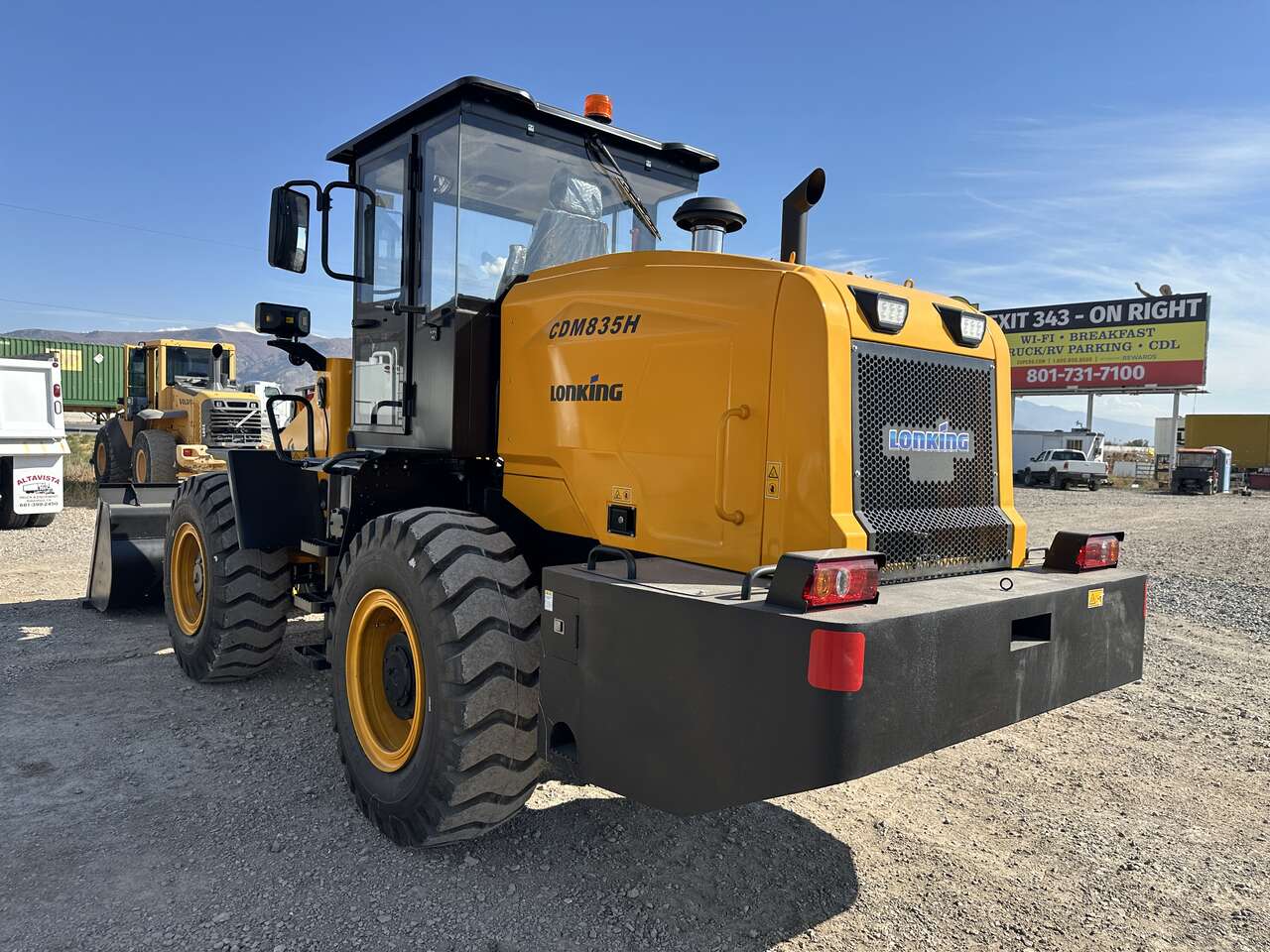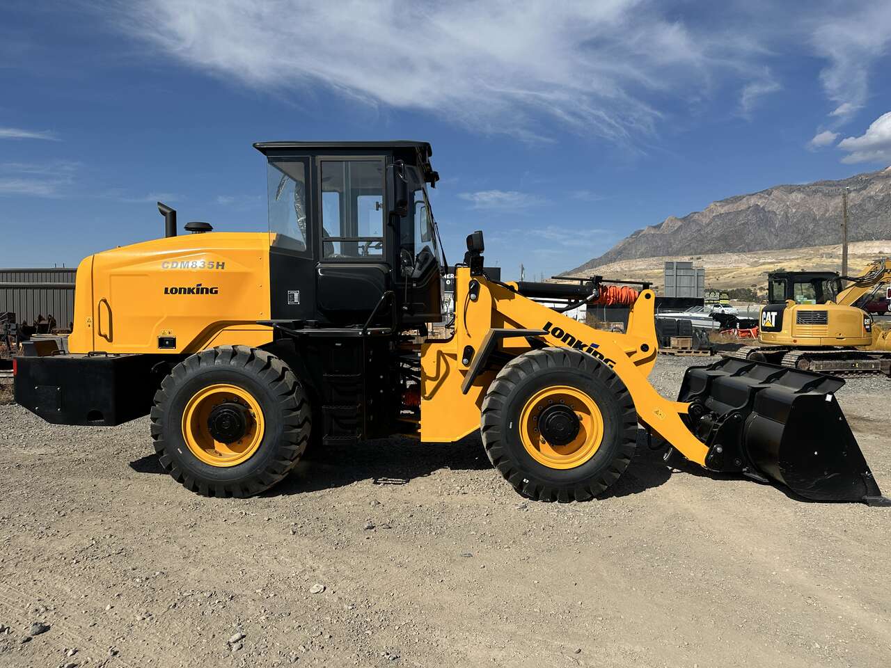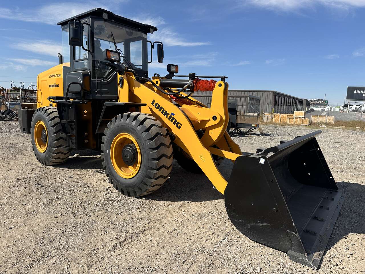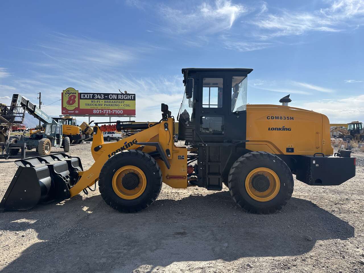 New 2024 Lonking CDM835H, high lift, quick coupler, forks, 2.35 yd bucket, a/c, Cummins B4.5 140hp engine, powershift transmission, 17.5x25 tires, 25,350 lb operating weight, 13'3" bucket pin height at max lift, 7,717 lb rated payload, warranty, parts, support.