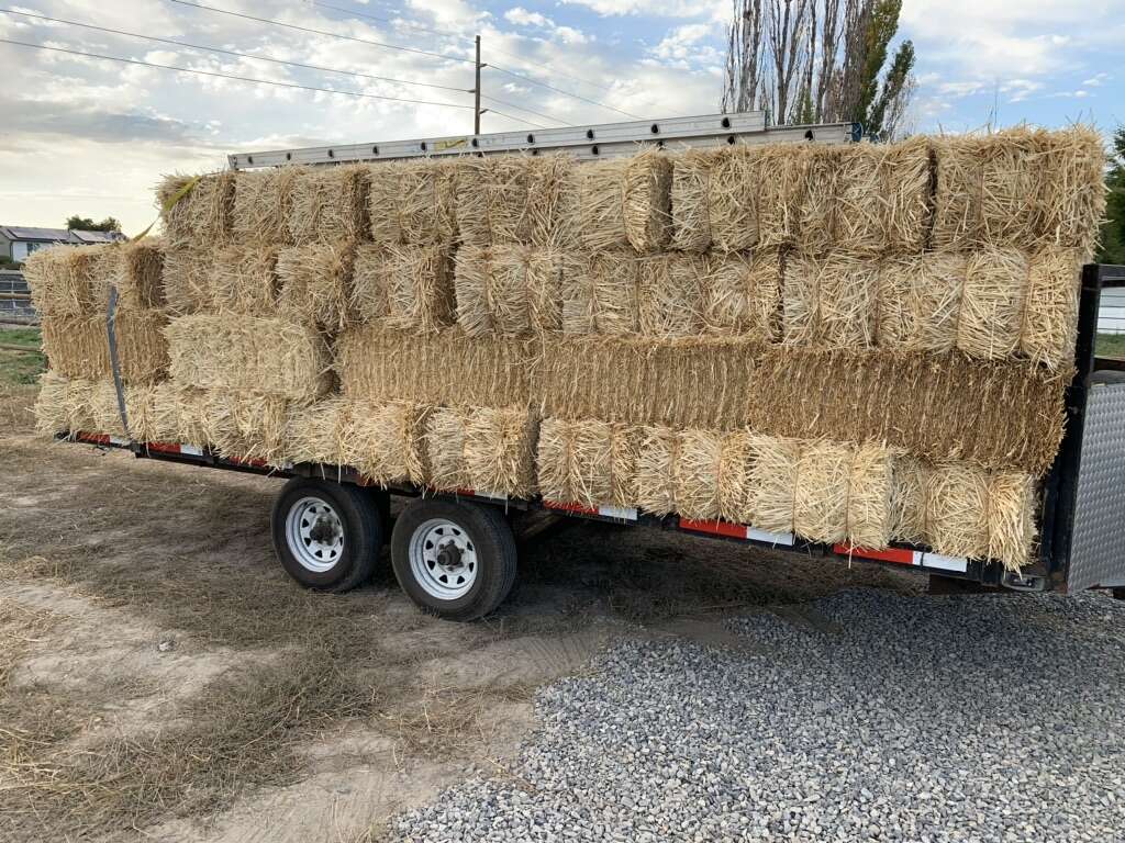 Last year’s cuts, organic wheat straw grown in northern Utah. 2 string bales weighing on average 55 lbs. Large, oversized bales measuring 15”x20”x45”. Bales are tight, golden yellow, clean and dry. 10 bale minimum for on site pick up by appointment only. Delivery available with a 40 bale minimum. $30 within 10 miles of W Bntfl and $1.50 for each mile beyond the initial 10. Will need to assist with unloading/stacking or there is an additional charge of .50 per bale if I do it solo. Barn must have close and easy access for unloading. A travel distance further than 50 miles will require the delivery fee in advance for first time deliveries. Barn stored. Quality guaranteed.