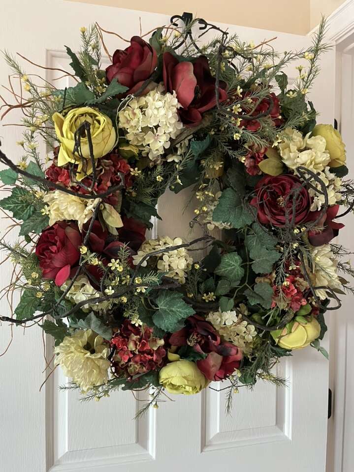 Beautiful large 30” wreath with fall colors! Roses,hydrangeas and ivy!