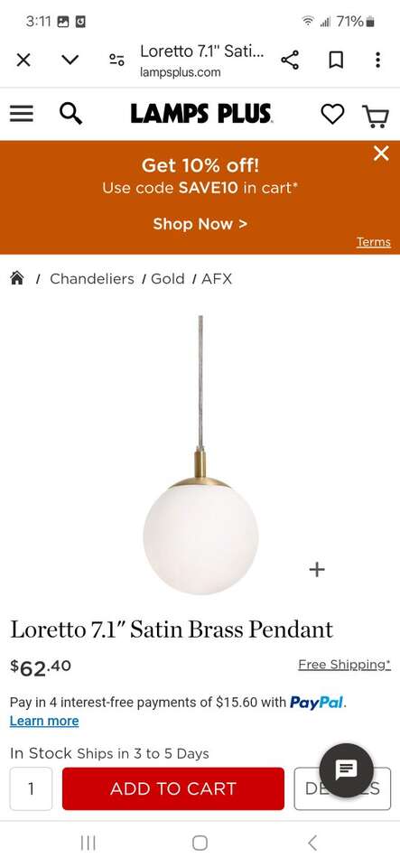New in box hanging pendant globe. Measures 7.5" across.