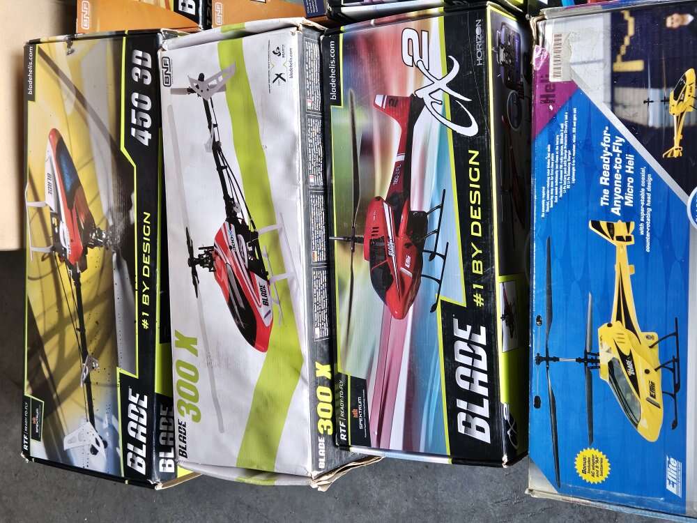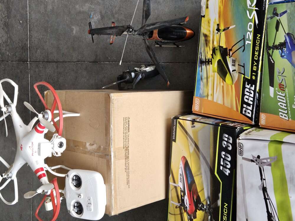 have several helicopter and a few drones if you need pictures please let me know it wouldn't let me post all of the pictures i have hundreds of spare parts some new sum used to many for pictures I'm looking to trade for electric bike or mountain bike or something that might interest me my name is Nick text is best 760-964-5723