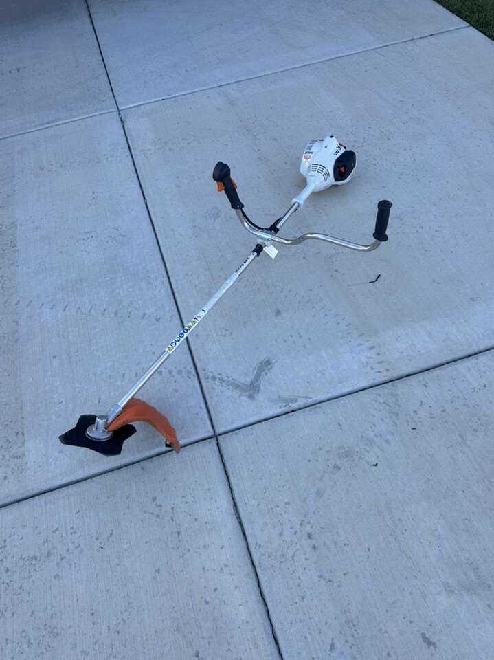 This is a used Stihl FS 56 C brushcutter for sale at Cutler's! This model is designed to clear thick brush and small trees quickly and easily. This model comes with a metal brushcutting blade but a line trimmer head (sold seperately) can be attached as well. This brushcutter features a bicycle-style handle system. This helps give the operator more control and stability, as well as reduces fatigue. This machine has been gone over by professional power equipment mechanics and is in great working condition! If you are interested, please contact Cutler's Inc. 801-224-5005 271 North State Street, Orem, Utah, 84057 *sales tax is not included in advertised price; sales tax will be included upon purchase.