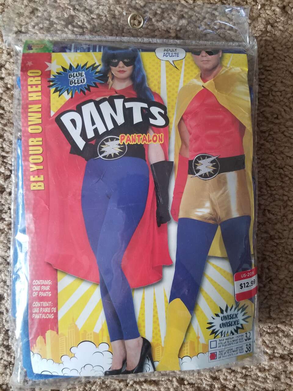 Super Hero Costume Accessories Spandex Pants and Boot Covers. Pants size L (38). Colors: $7 Red, $7 Blue Boot Covers: $7 Brown Easy to make your own costume with any combination of these accessories.