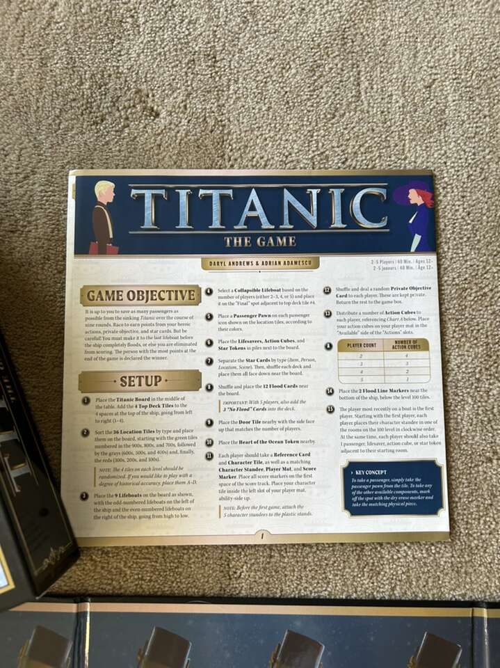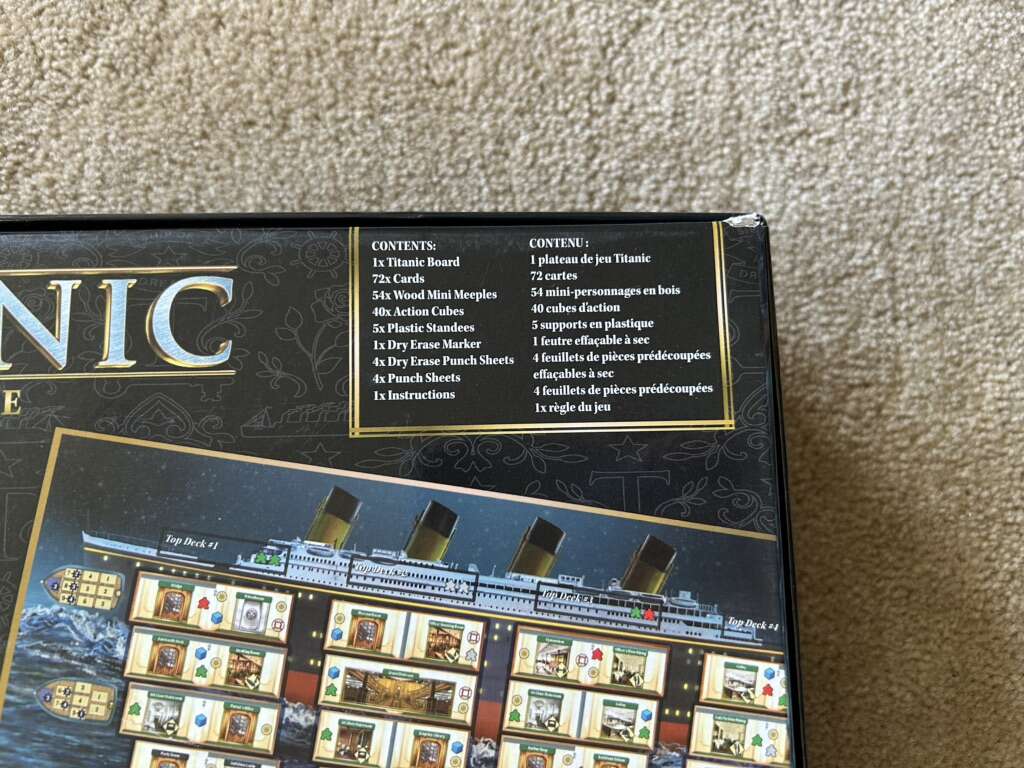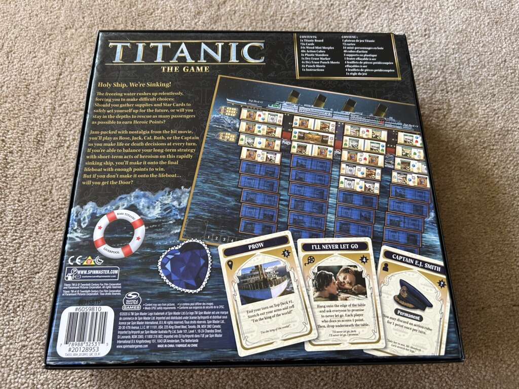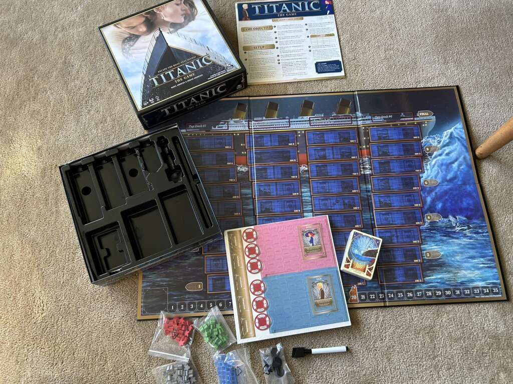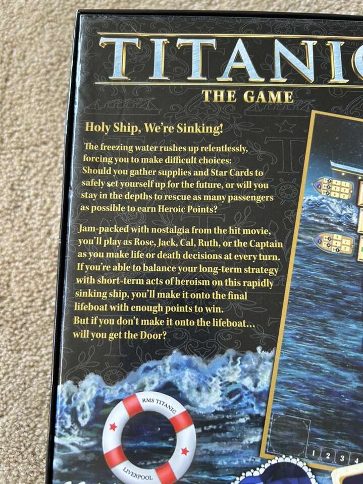 NEW (open box, sealed and unpunched components) Titanic: The Game. Escape the boat, stay afloat. Based on the movie. Age 12+, 2-5 players. By Daryl Andrews, Adrian Adamescu, Spin Master Games, 2020. New, unplayed condition. Text only. Cash or Venmo.