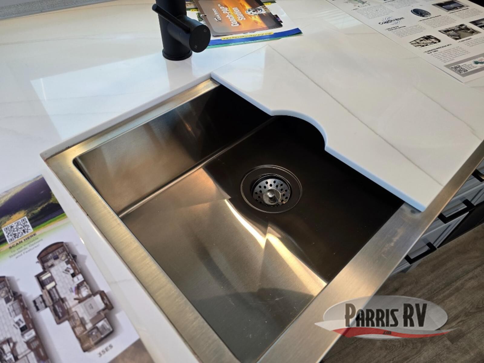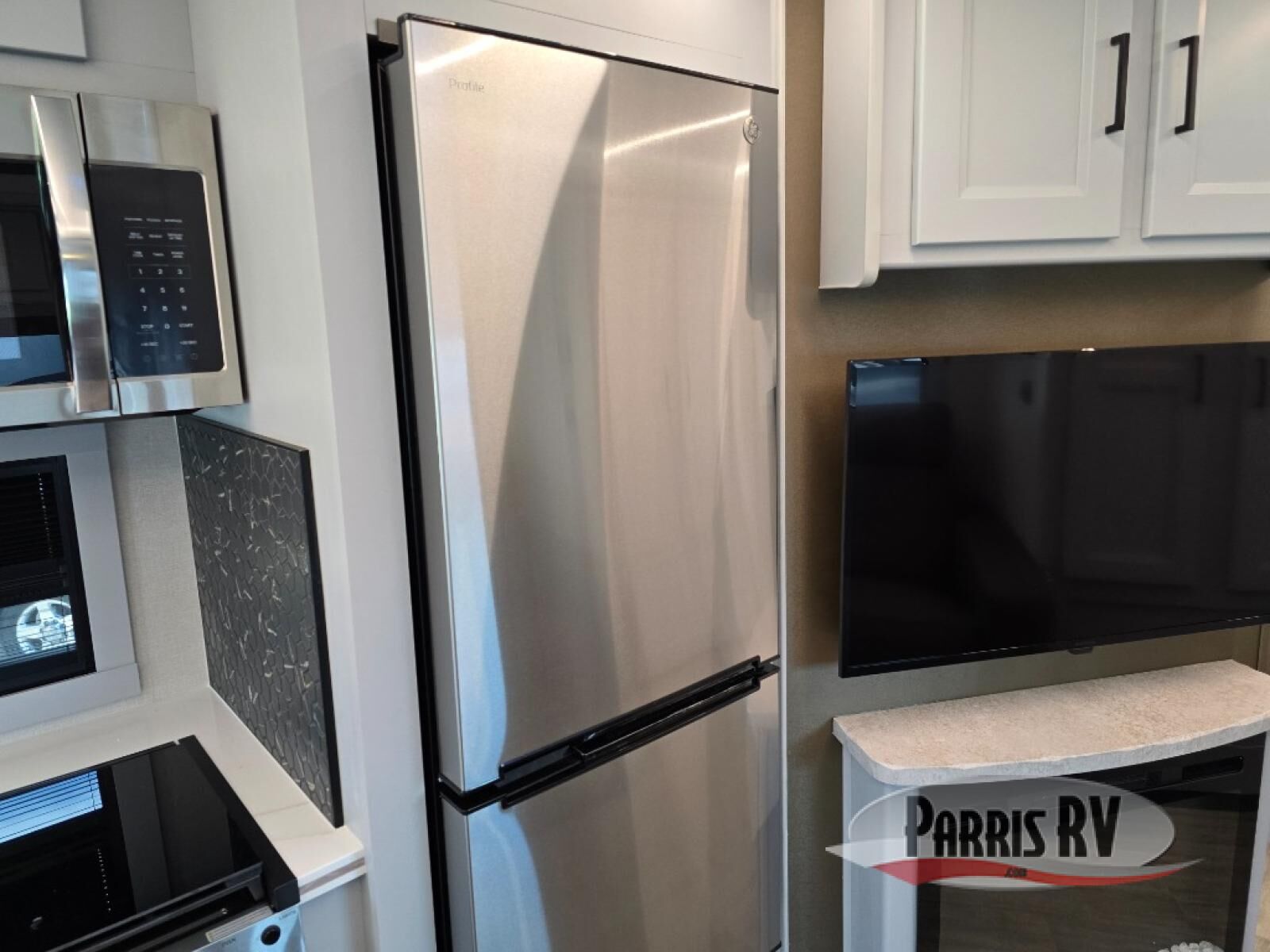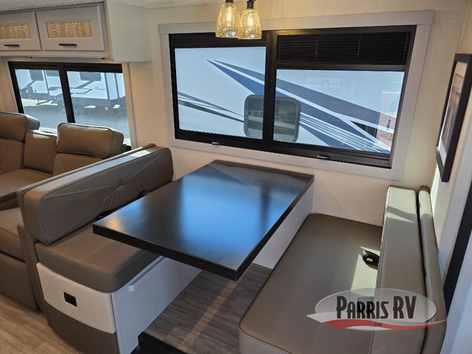 Experience a comfortable trip every time in this motorhome! It features a rear private bedroom with a 70" x 74" king bed including a storage system, a CPAP station above it, and opposite an LED TV above the dresser. Freshen up each morning in a full bathroom with a radius shower, and you can keep your clothes clean throughout your entire trip if you choose to add the optional stackable washer and dryer in the space opposite that has been prepped for it. The chef will have an easy time preparing their best meals indoors with a three burner cooktop, but can also enjoy cooking at the outside kitchen as well. The 42" x 76" booth dinette offers a comfortable place to enjoy your meals, and the 78" sofa with bed is conveniently across rom the LED TV and fireplace for a cozy evening indoors. Plus, you even have an exterior LED TV to watch the big game outdoors!