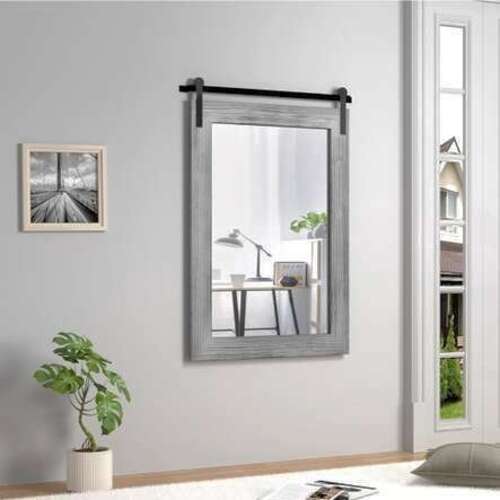 Farmhouse Bathroom Mirror - 42 x 29 Rustic Barn Door Style Mirror for Living Room, Entryway, Vanity Wall Decor (Grey)