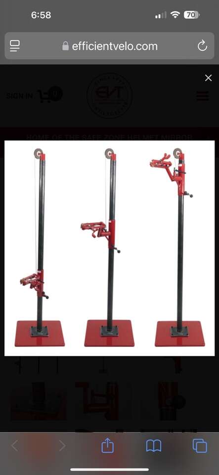 Selling a NEW Efficient Velo Tools EZ-Lift Bike Repair Stand. Best bike repair stand out there. For professional bike shops or avid cyclists. I ordered (2) units and only need the one so I’m selling one of the units. Custom iridium powder coated with the additional dolly so you can move it around your garage without scratching it. They take 3 to 4 months to get and with a custom color they cost over $4000 with shipping.. I’m asking $3000. Call or text Travis at (801) 696-6969