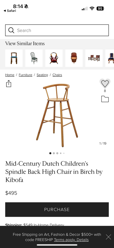VenmoMid-Century Dutch Children's Spindle Back High Chair in Birch by Kibofa. The name Kibofa stands for “Kinderstoelen en Boxen Fabriek”.