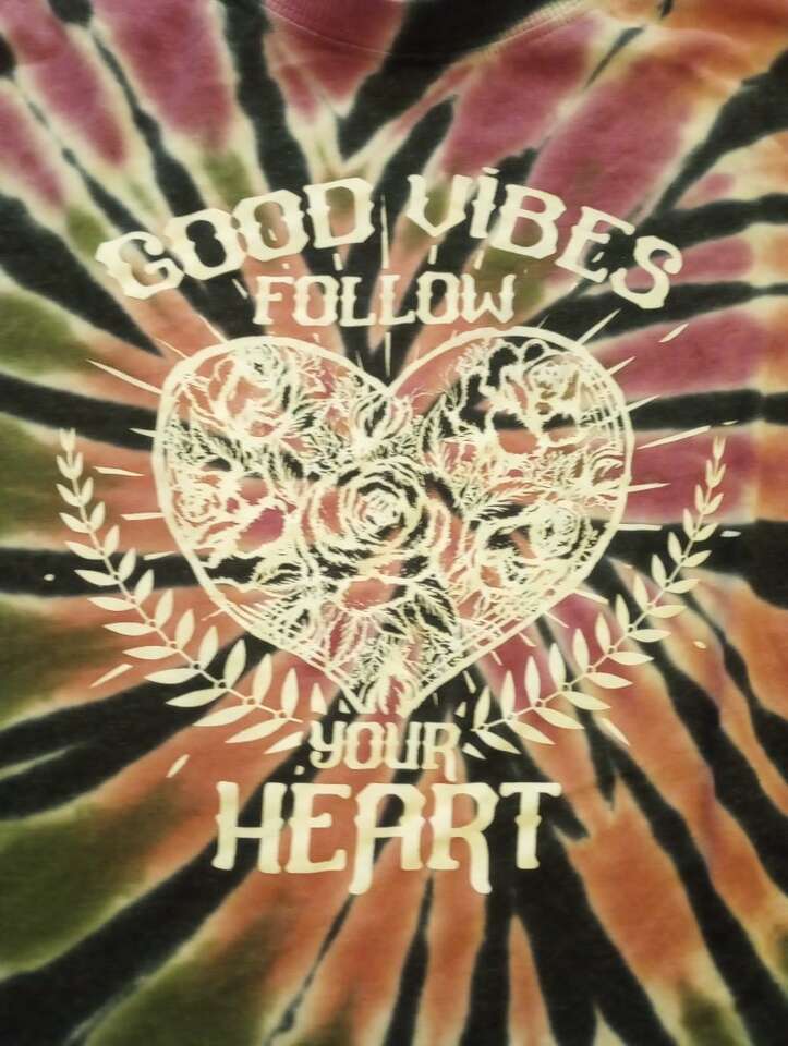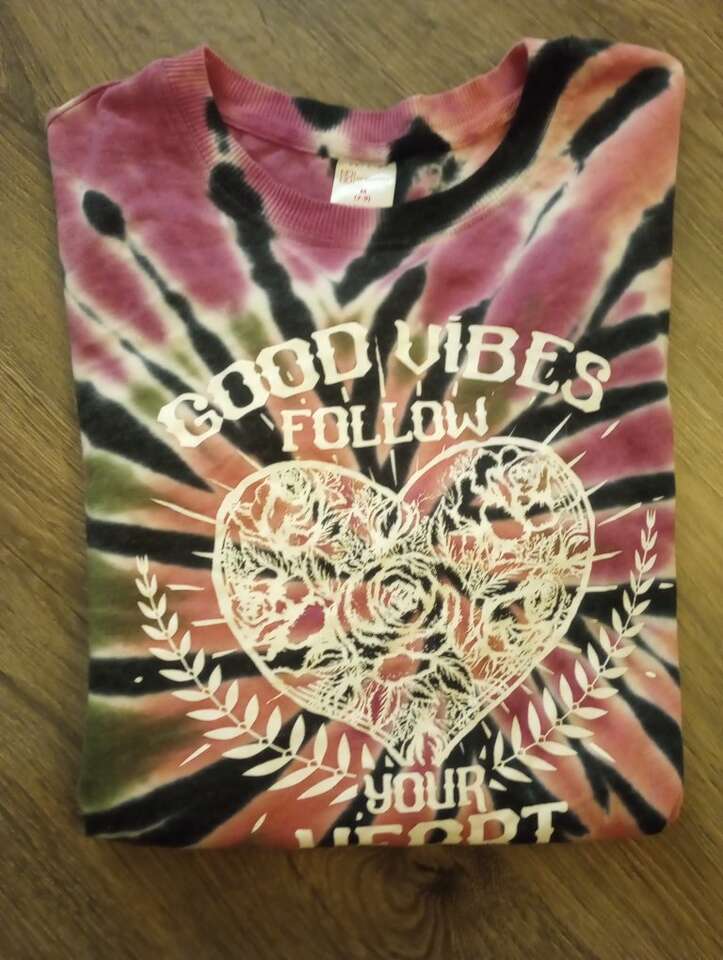 VenmoNew without Tags~ Good Vibes~Follow Your Heart Tie-Dye, long-sleeved shirt, slightly cropped. Size Medium 7/9. From a pet and smoke-free home. Bought this for my daughter and she never wore it. No boundaries brand. Text if interested. Lots of other teens and women's clothing~check out my other ads.