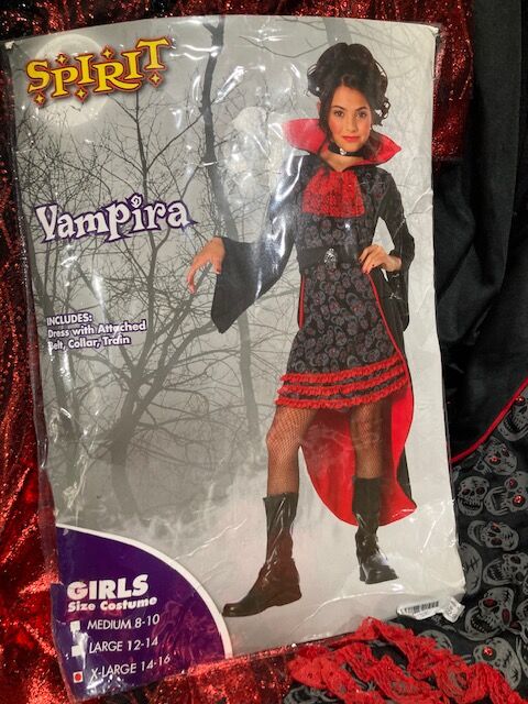 Spirit Halloween VAMPRESS Set... Size Child S 5/6 T $20 Vampira-Size Child XL 14/16 $20 Located in East Sandy