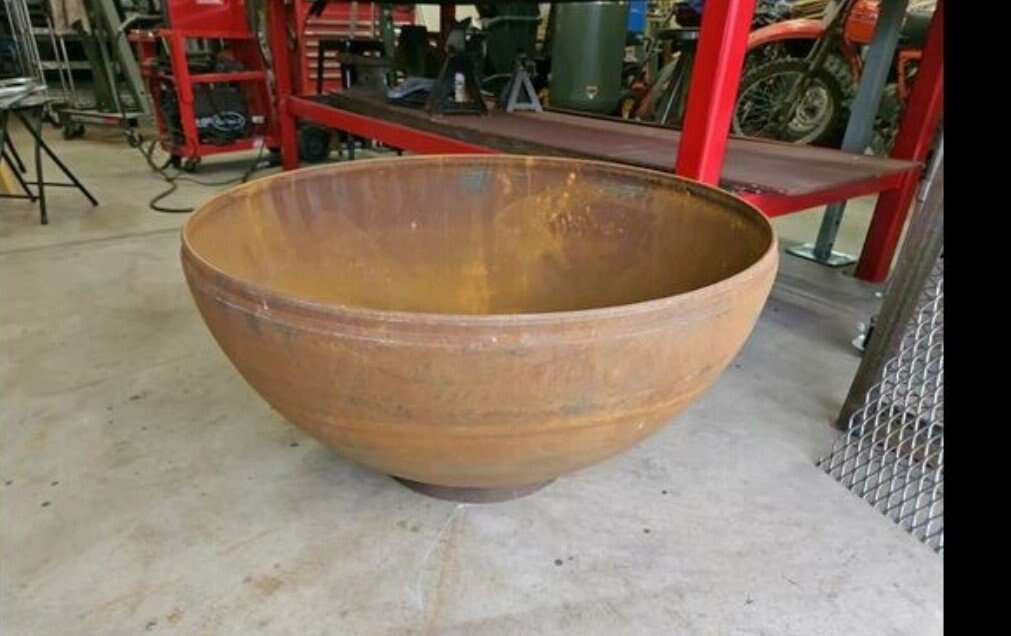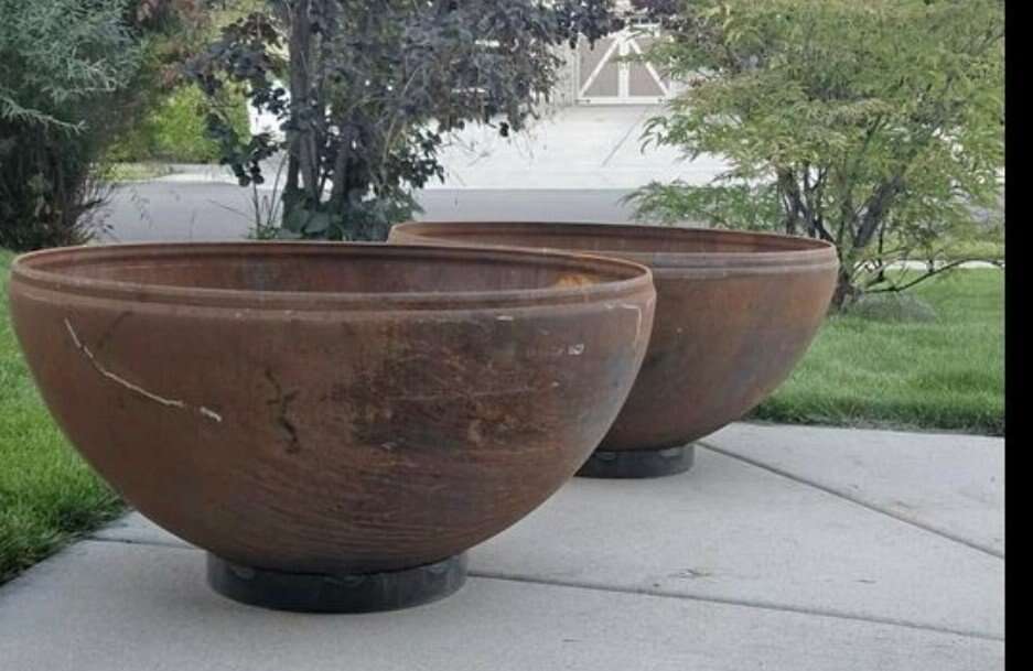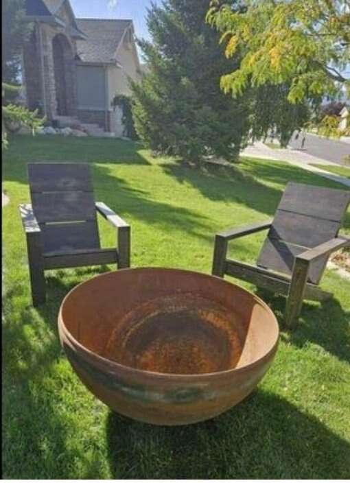 Create great memories with your friends and family. great for cool or cold nights. These have a beautiful patina. Large steel bowl firepit or can be used for planter or flowerpot. 1/4 inch steel will last a lifetime. 37 or 41 inch diameter 19 inces tall including the base ring.